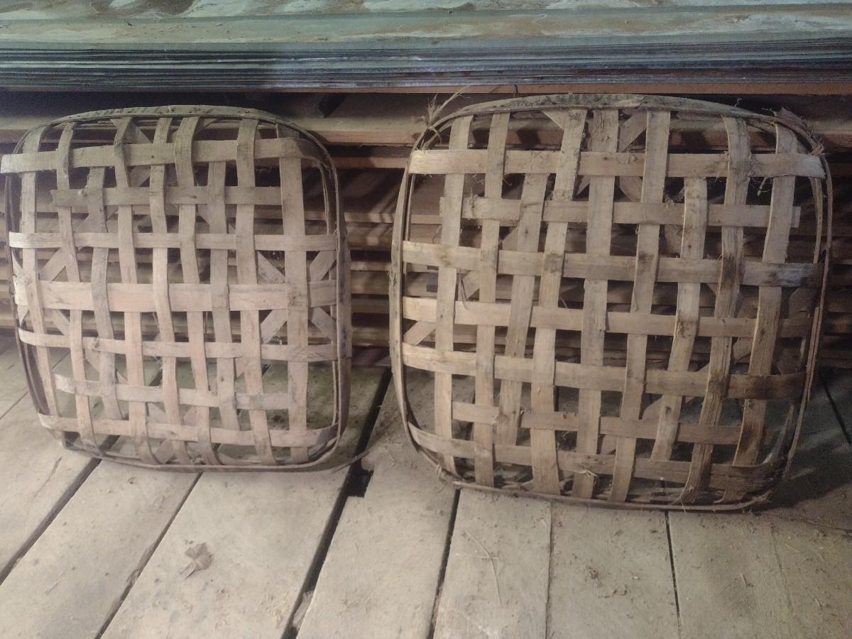 Vintage Authentic Splint Wood Tobacco Leaf Market Baskets (Z). Sizes of each basket will vary. The baskets are all in used condition and will have broken slats, missing pieces, stains, etc. Sold as is.