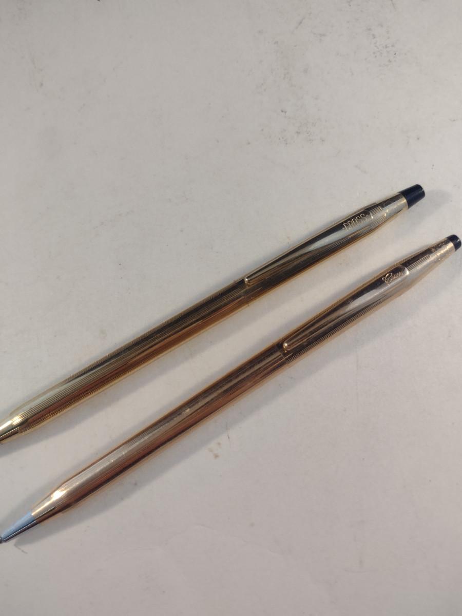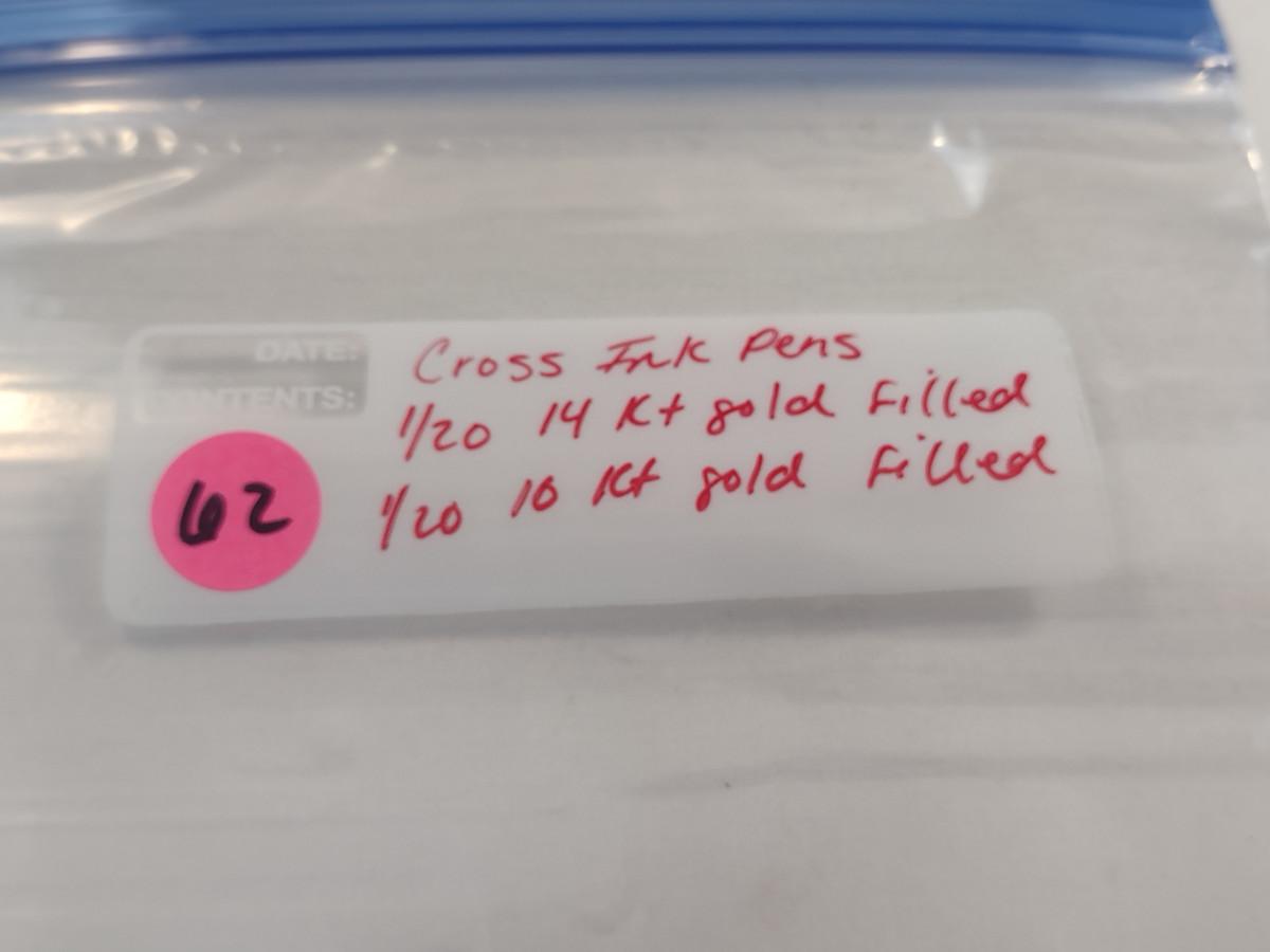Pair of Cross Gold Filled Ink Pens (#62). One is 1/20 10K gold filled, one is 1/20 14K gold filled.