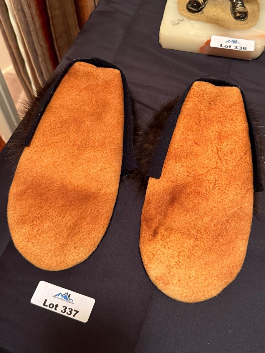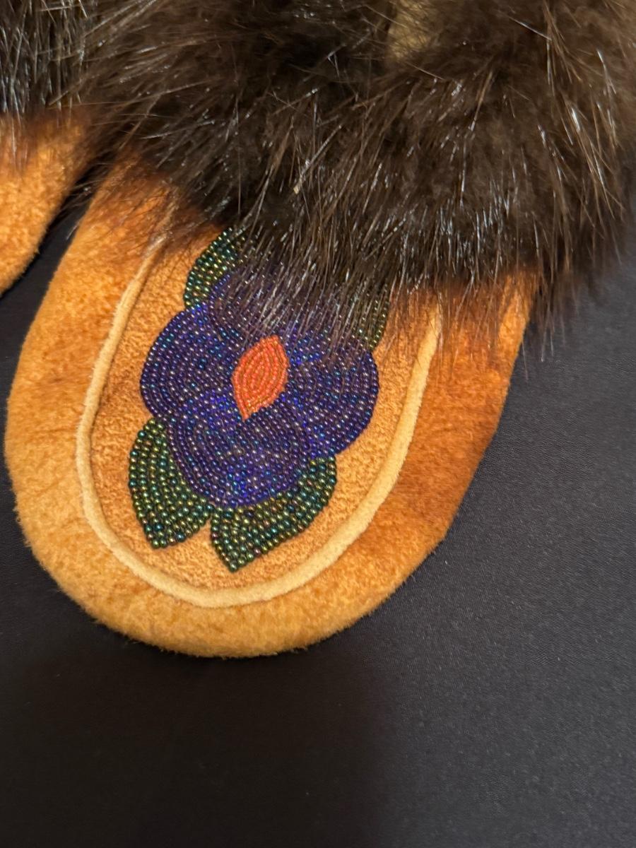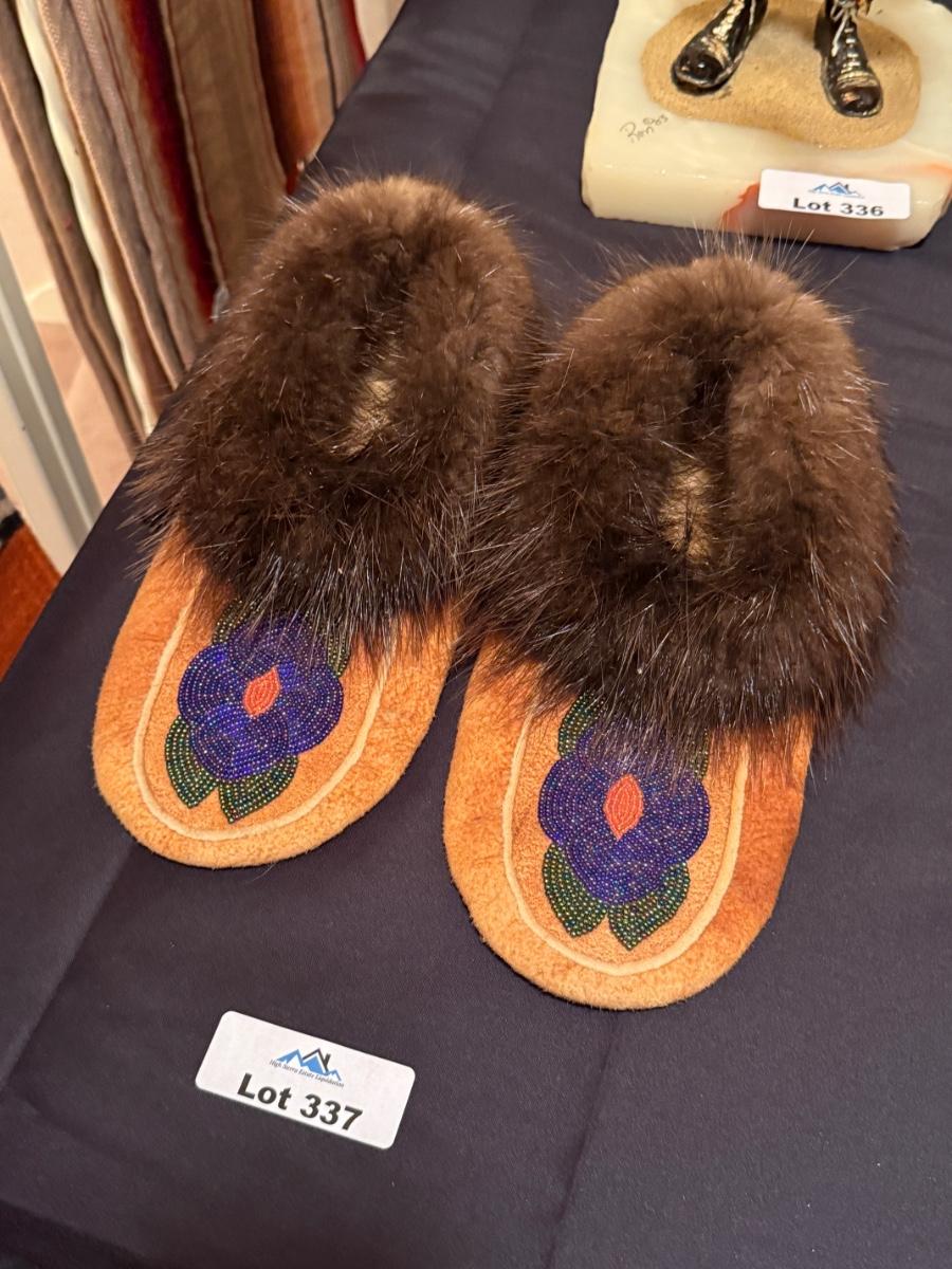 Pair of leather/fur & colorful beaded Moccasins