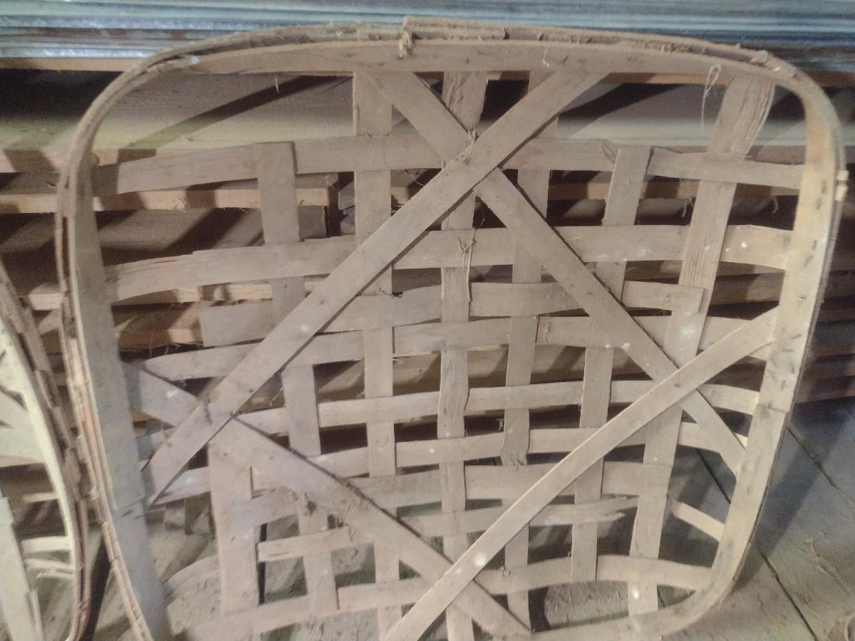 Vintage Authentic Splint Wood Tobacco Leaf Market Baskets (V). Sizes of each basket will vary. The baskets are all in used condition and will have broken slats, missing pieces, stains, etc. Sold as is.