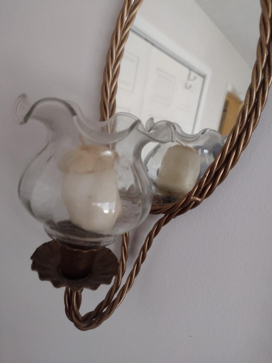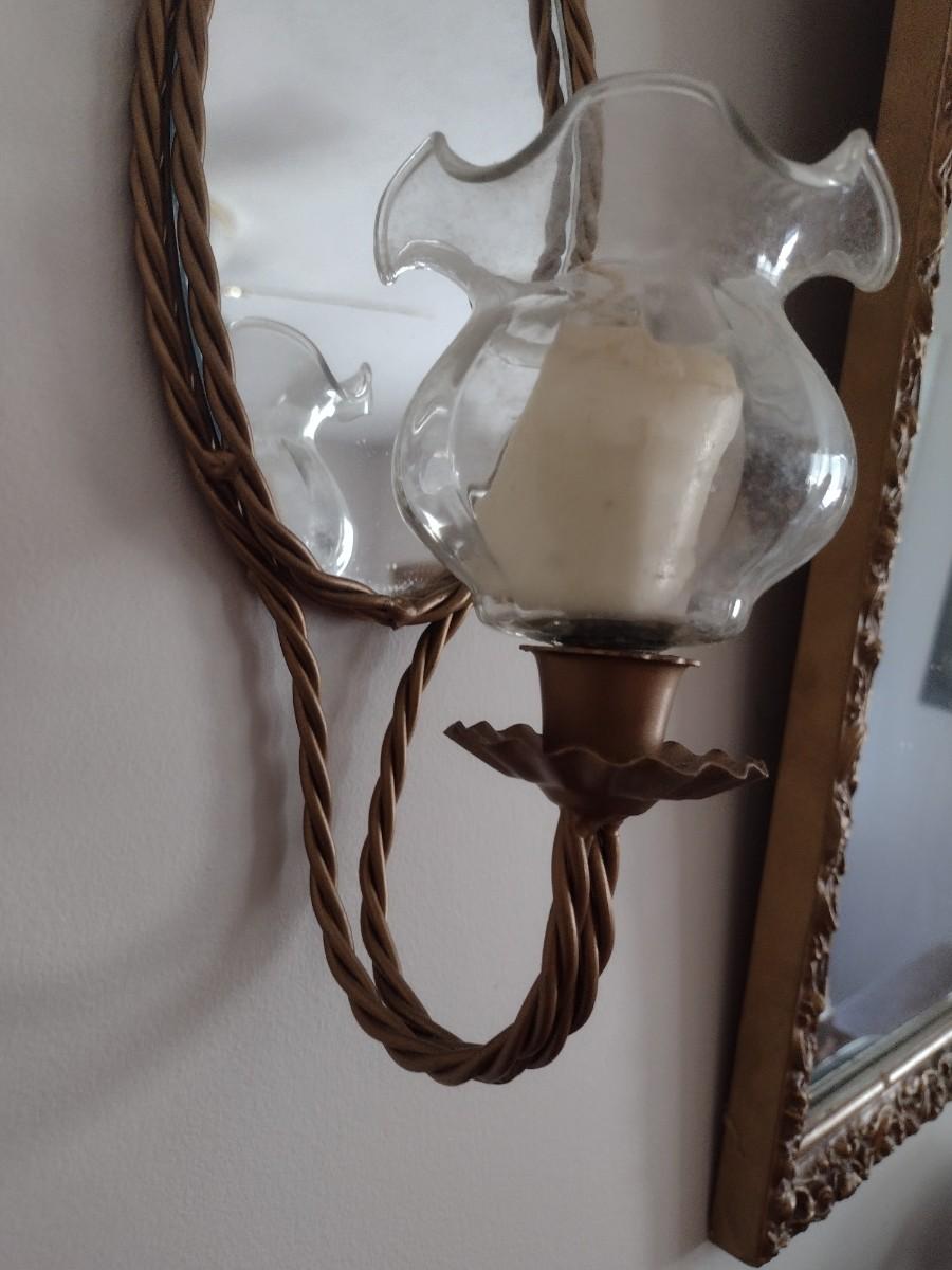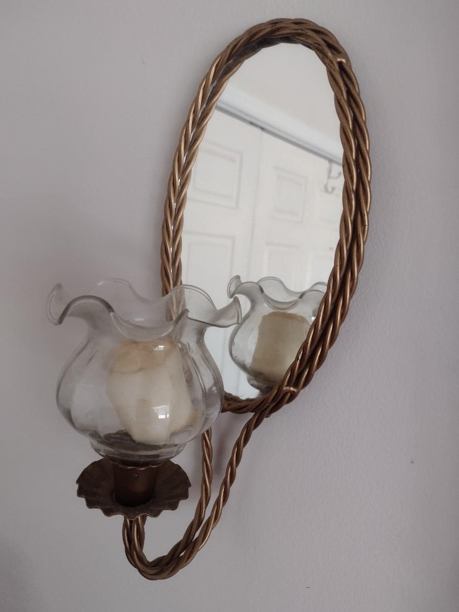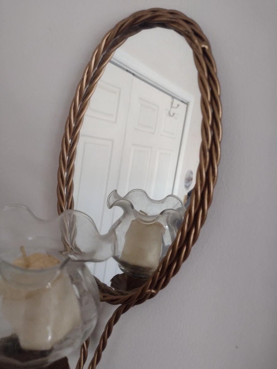 Pair of Matching Vintage Candle and Mirror Wall Sconces with Metal Rope Design