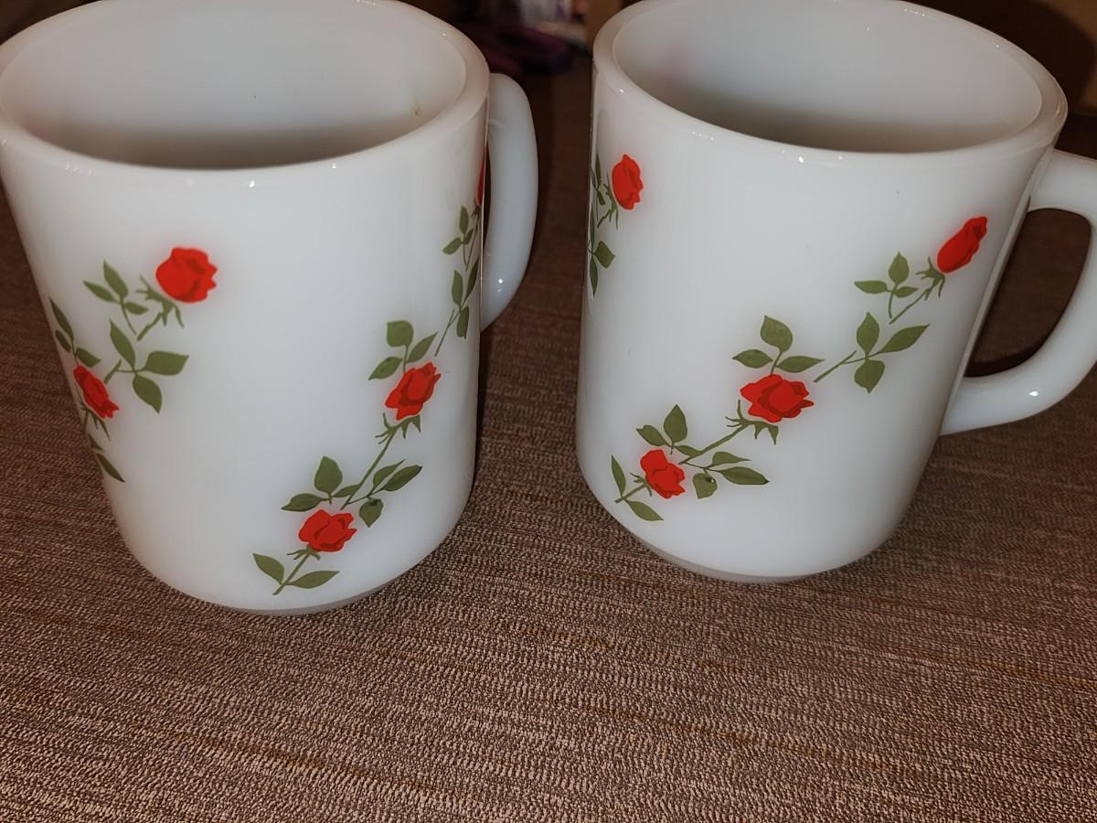 Pair of milk glass rose mugs