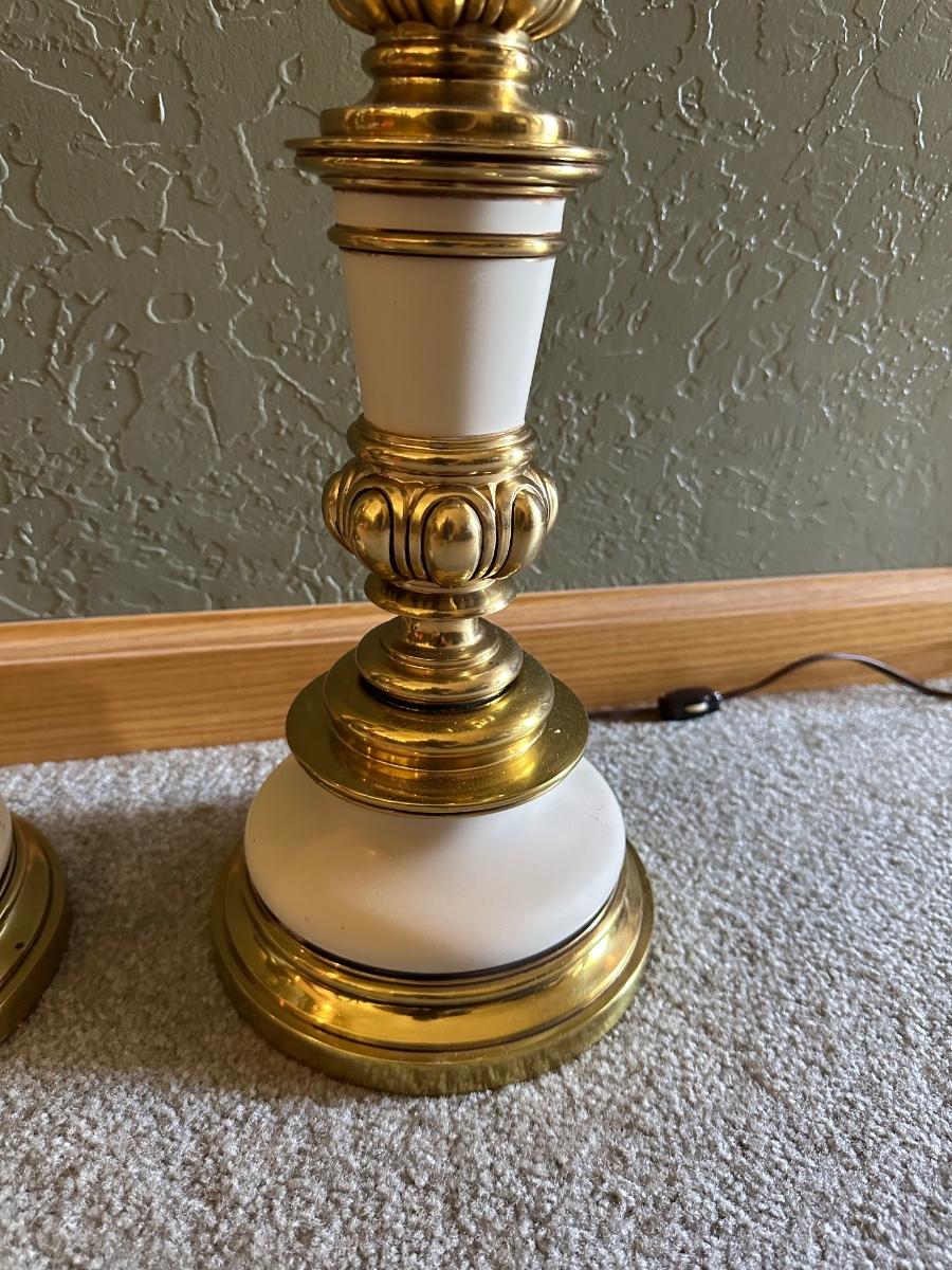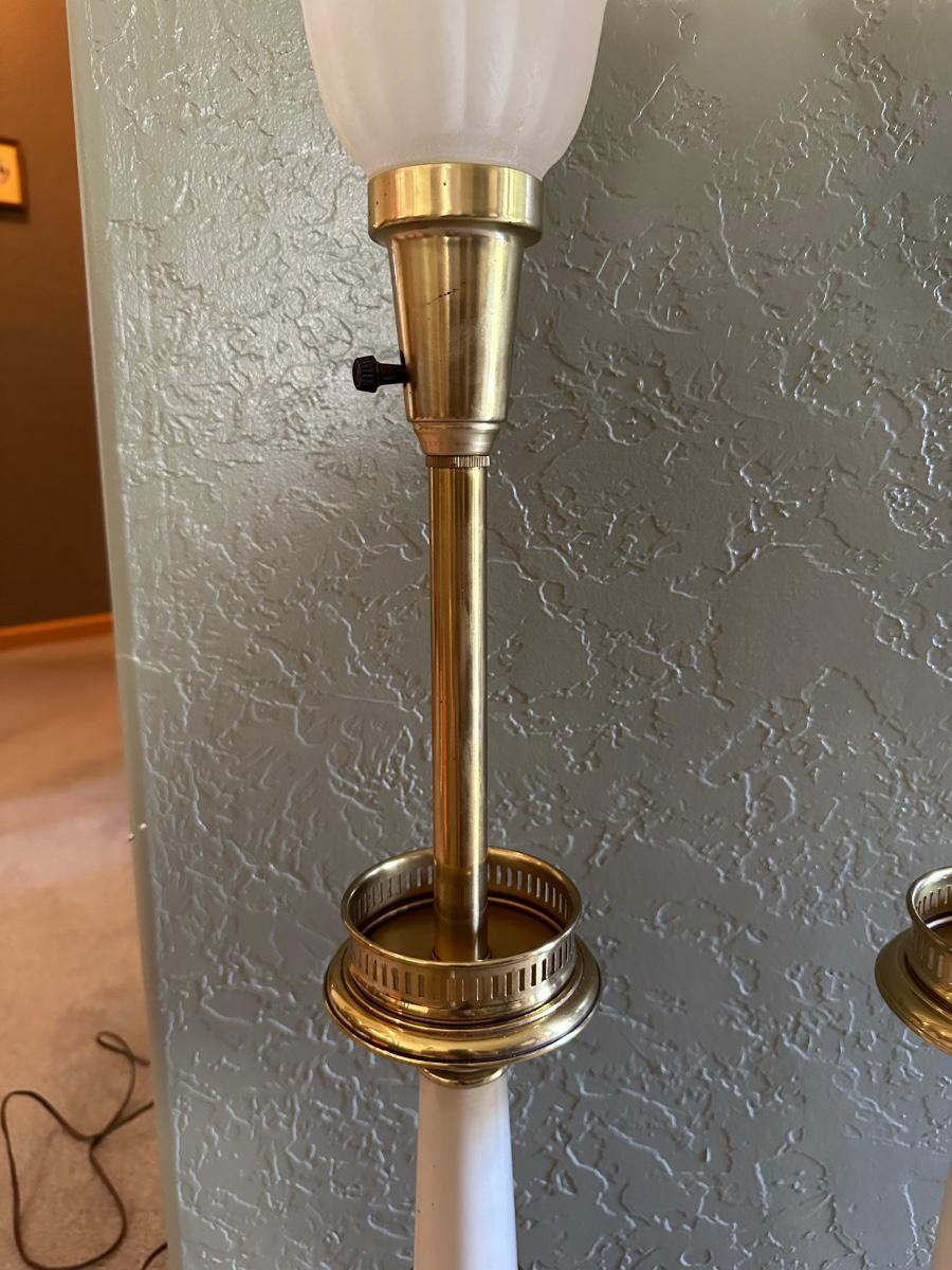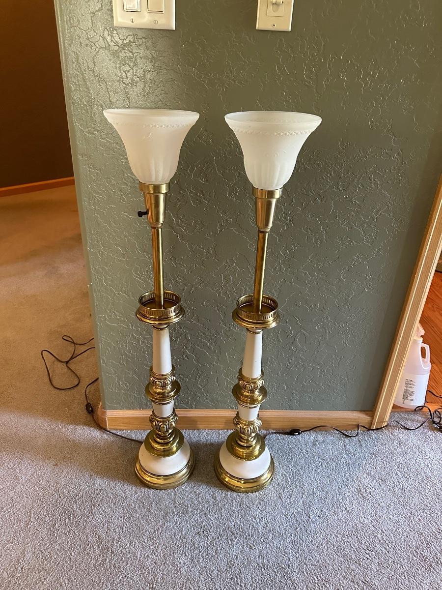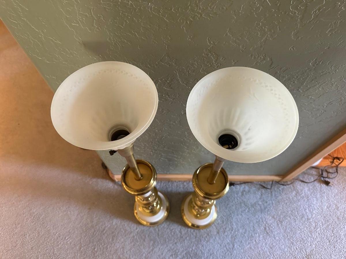 PAIR OF STIFFEL LAMPS WITH MILK GLASS SHADES