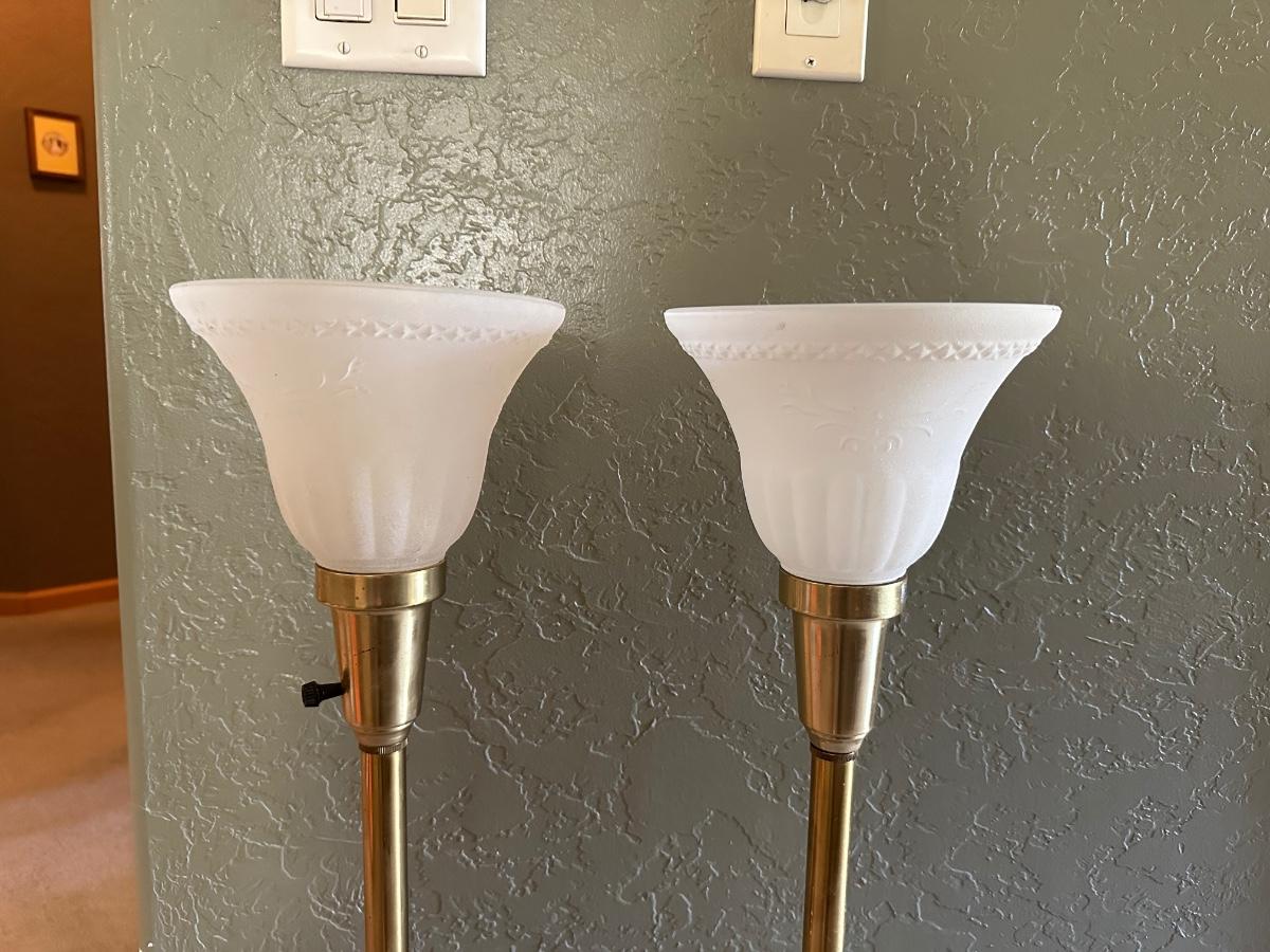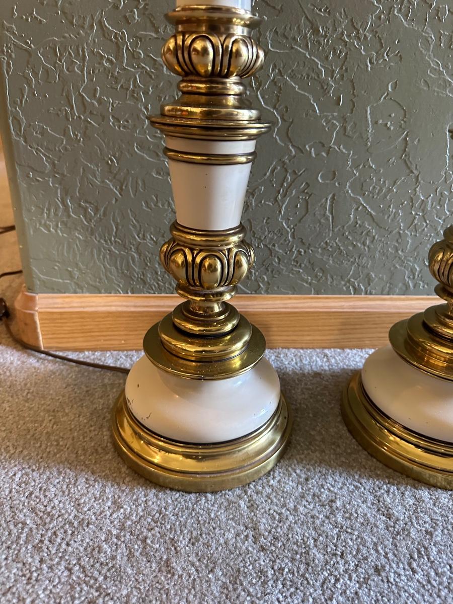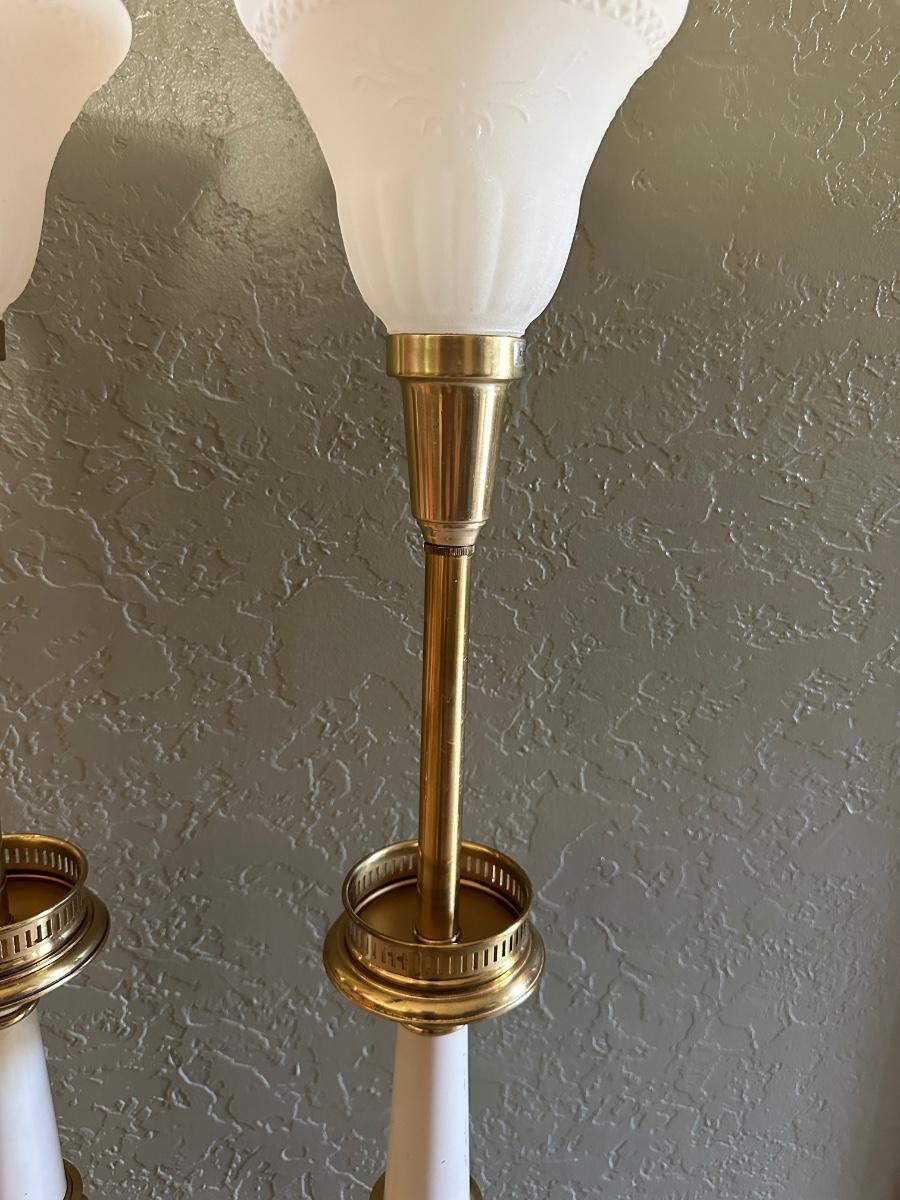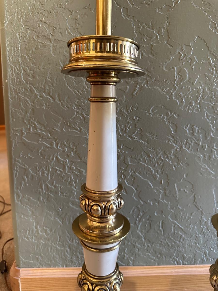 PAIR OF STIFFEL LAMPS WITH MILK GLASS SHADES