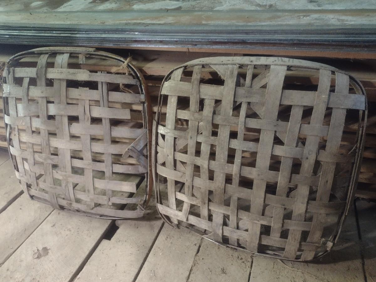 Pair of Vintage Authentic Splint Wood Tobacco Leaf Market Baskets (U)