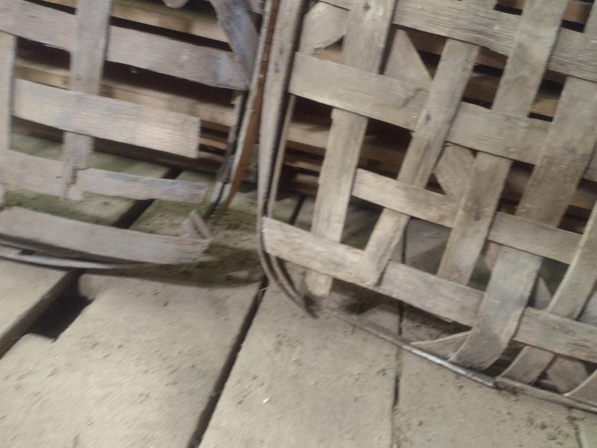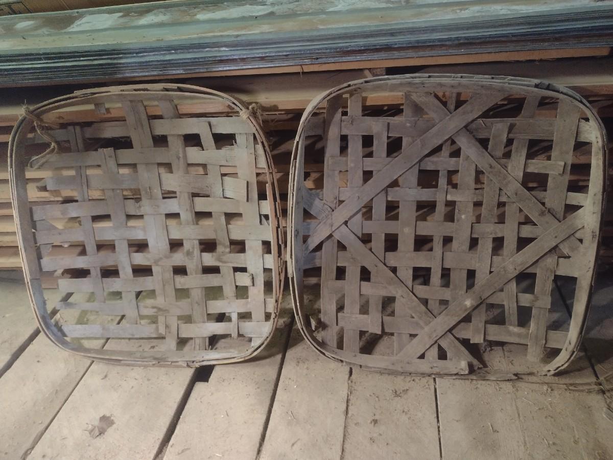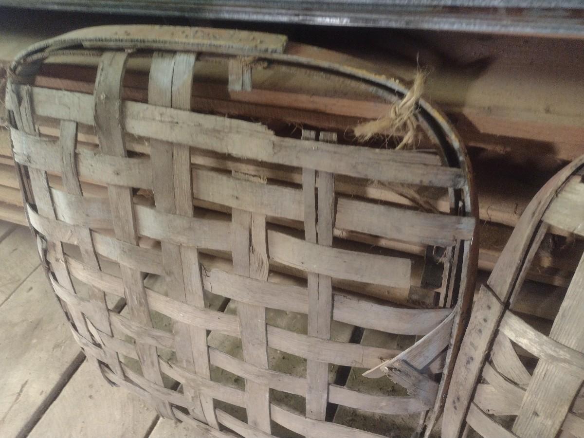Vintage Authentic Splint Wood Tobacco Leaf Market Baskets (U). Sizes of each basket will vary. The baskets are all in used condition and will have broken slats, missing pieces, stains, etc. Sold as is.
