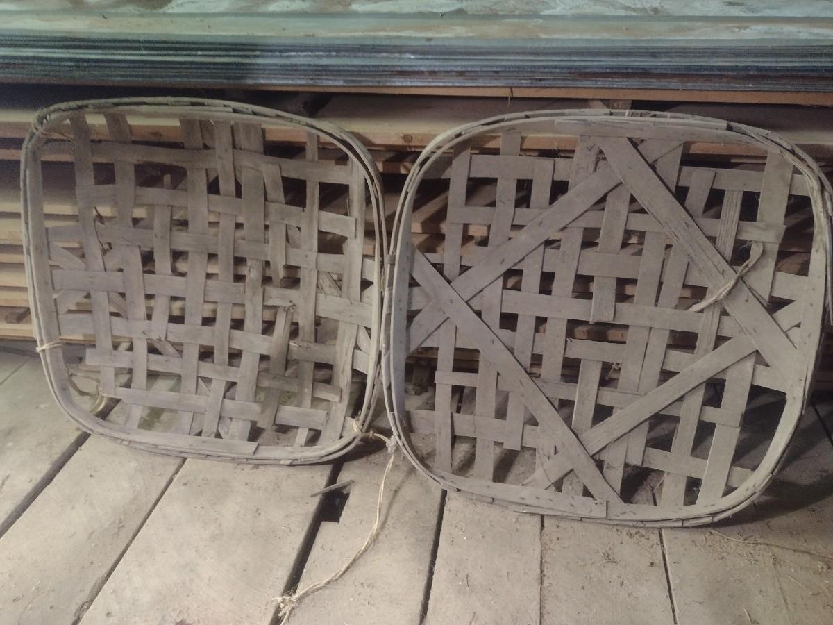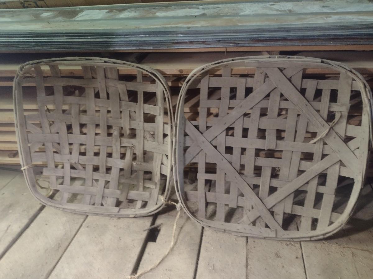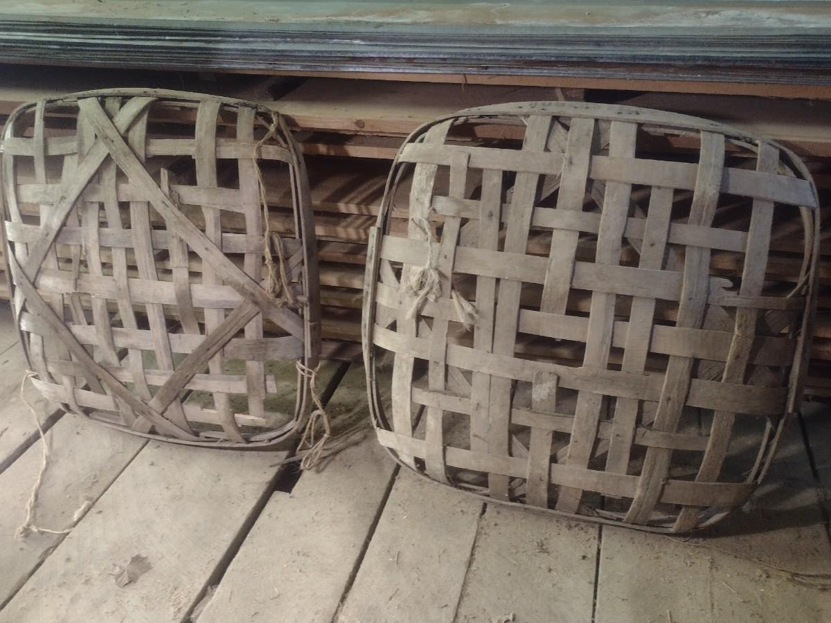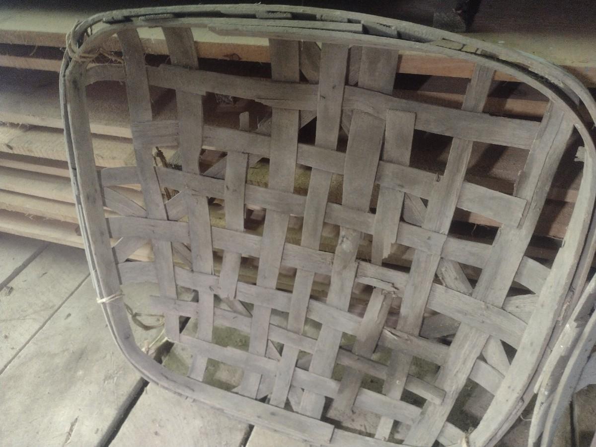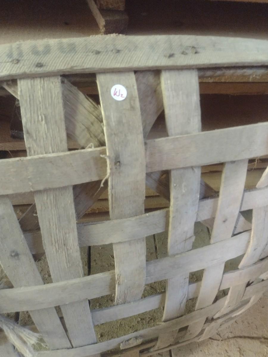 Vintage Authentic Splint Wood Tobacco Leaf Market Baskets (W). Sizes of each basket will vary. The baskets are all in used condition and will have broken slats, missing pieces, stains, etc. Sold as is.