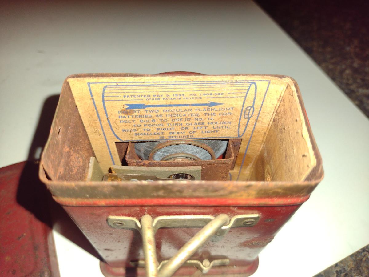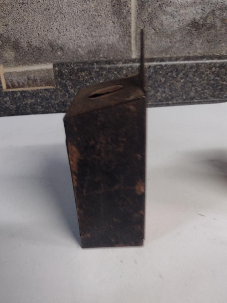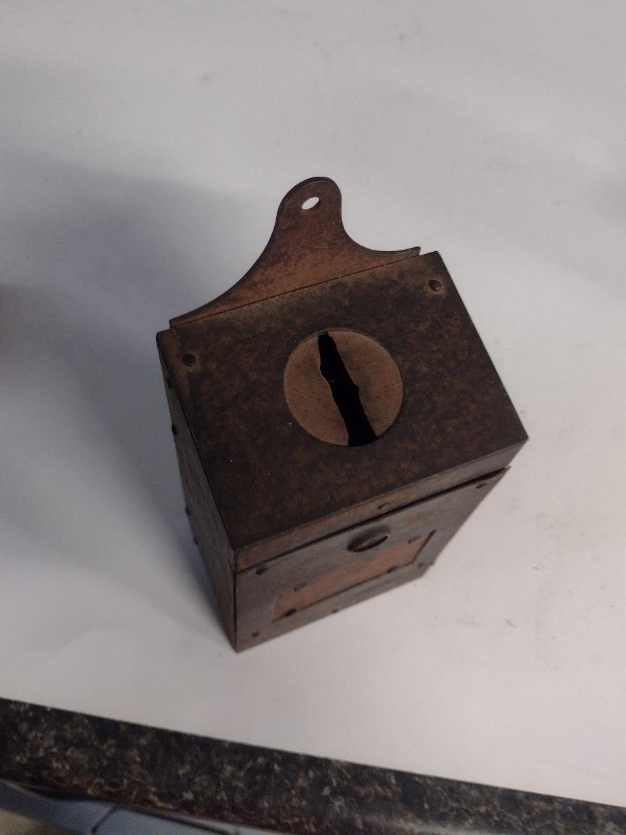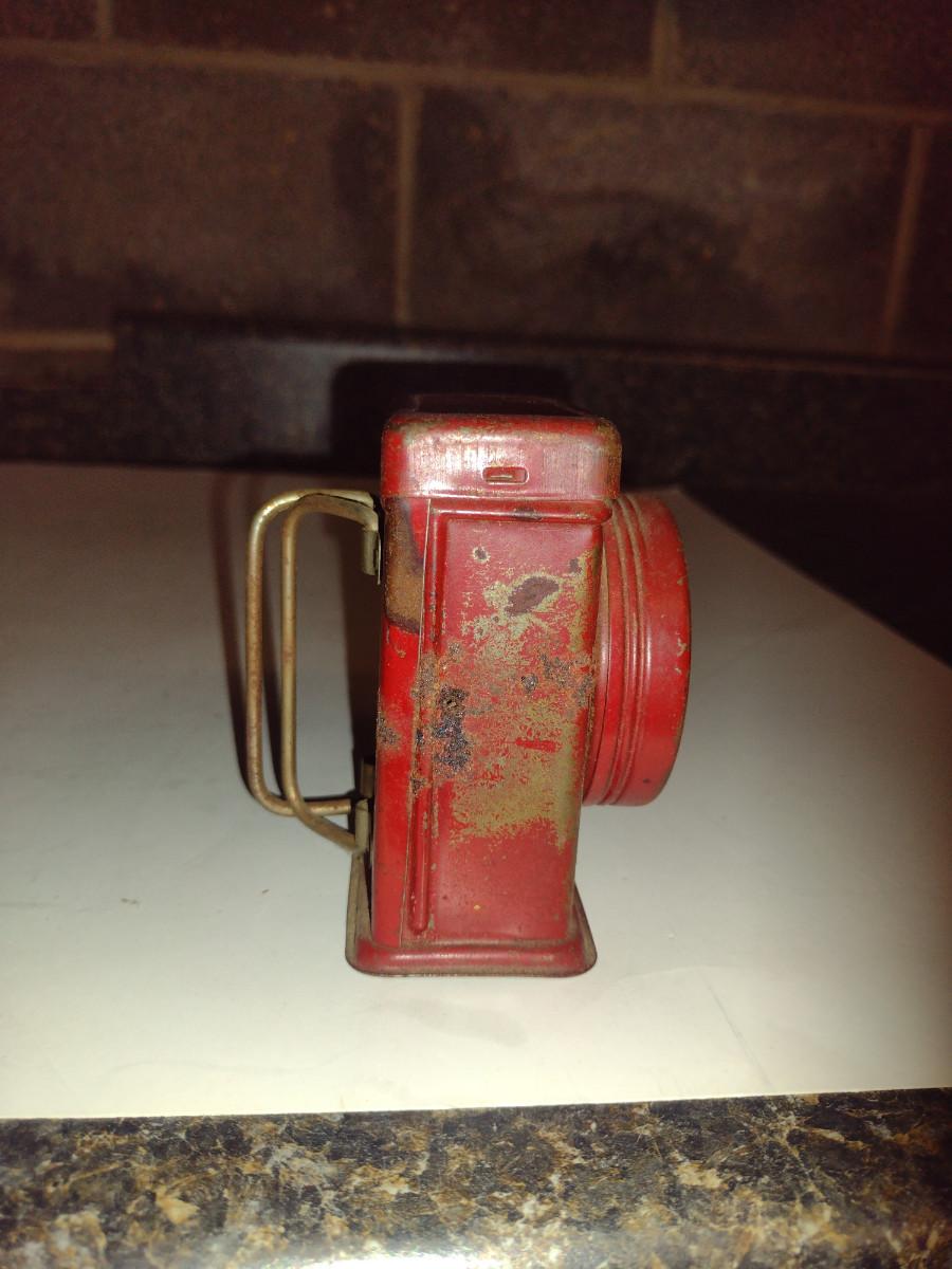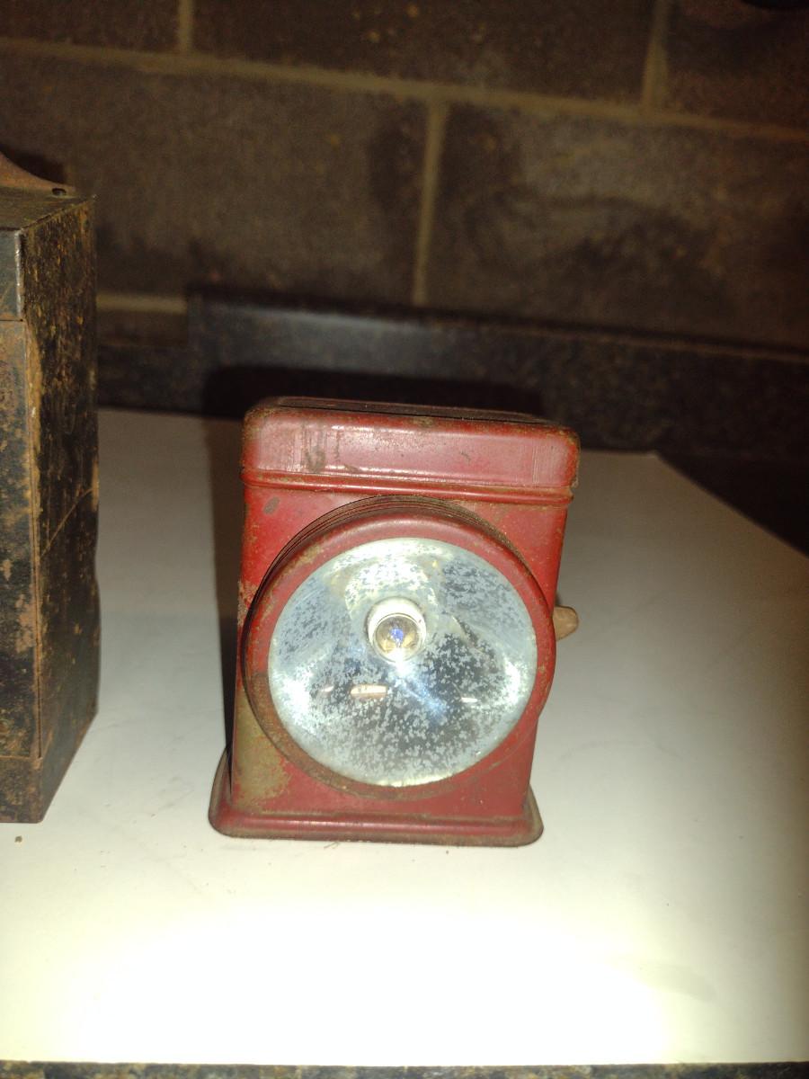 Pair of Vintage Collectibles- Metal Bank and Flashlight. Both pieces are in heavily worn condition- please see all pictures. No key available.