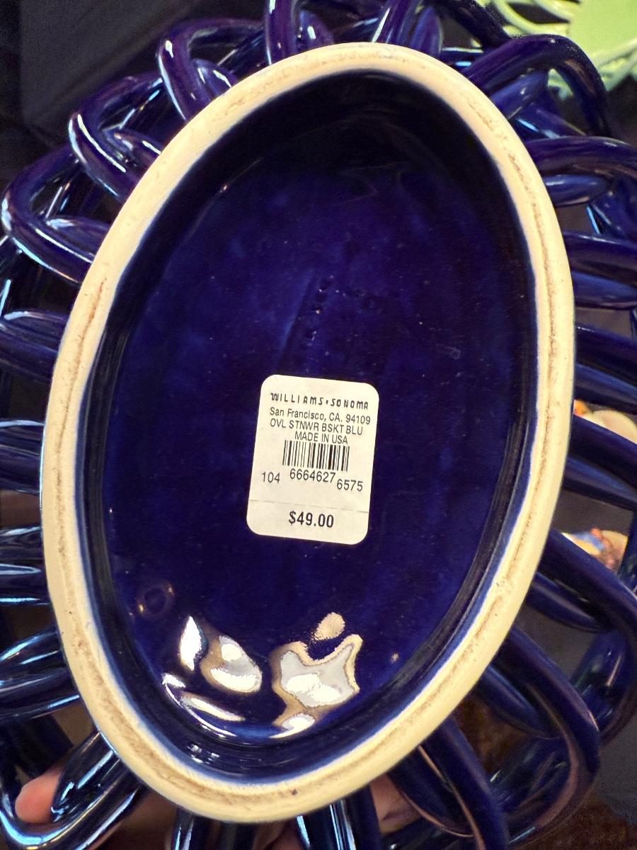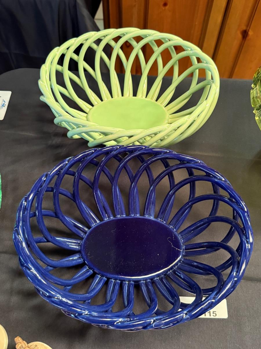 Pair of William Sonoma Ceramic Baskets - Blue & Green