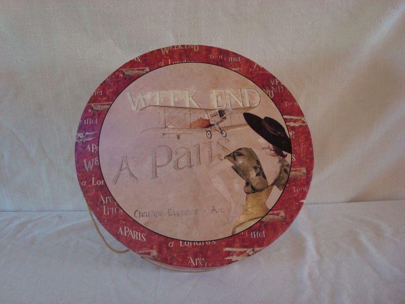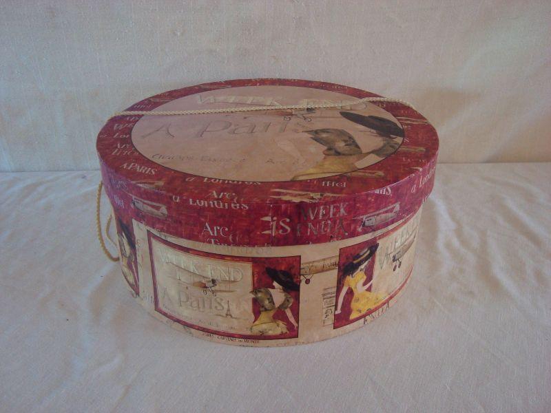 Decorative Paris Theme Hat Storage Box, in Great Condition 15" x 6 3/4"