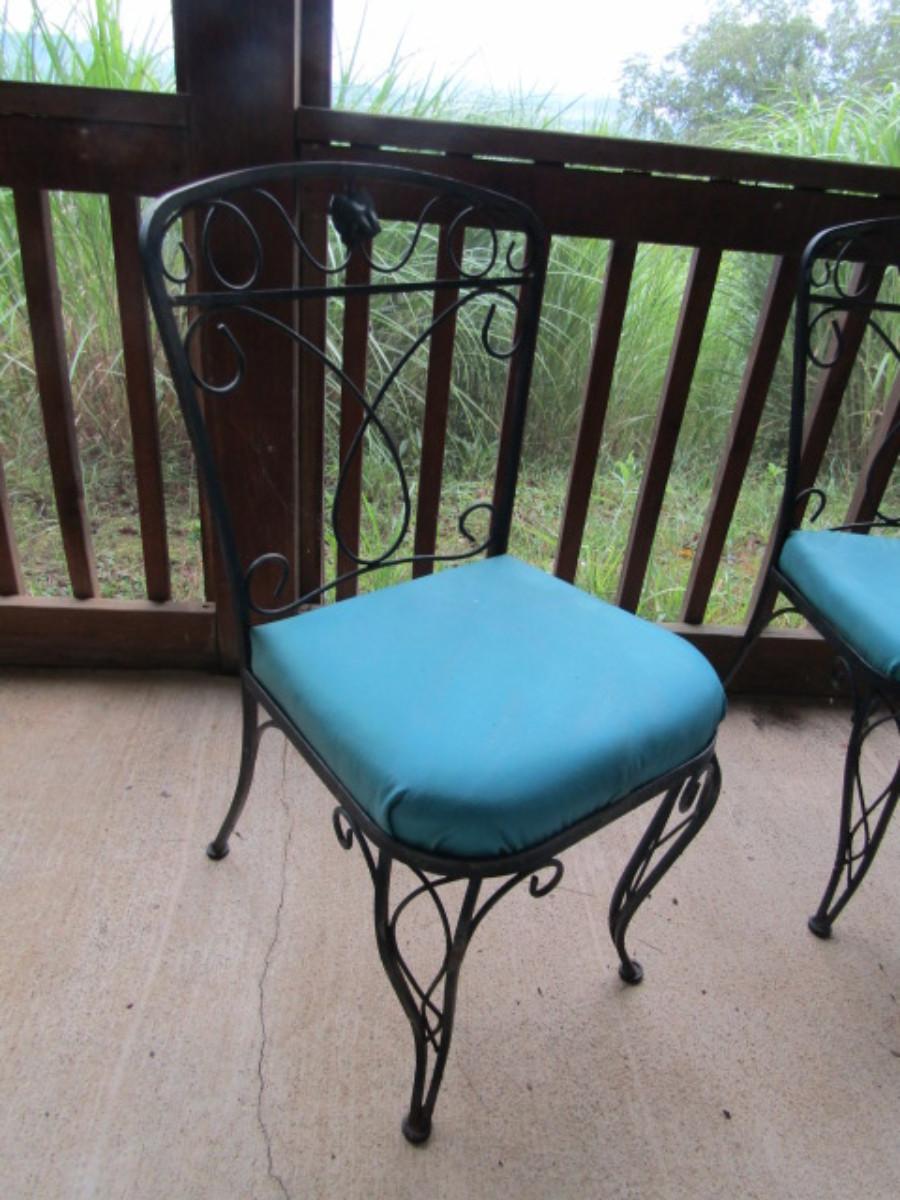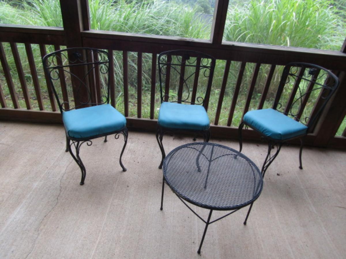 Patio Furniture- Three Wrought Metal Chairs and One Side Table
