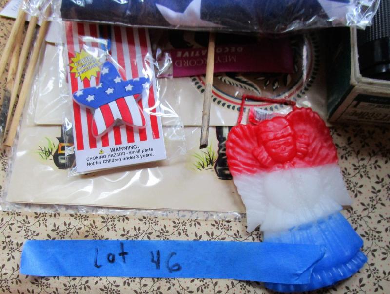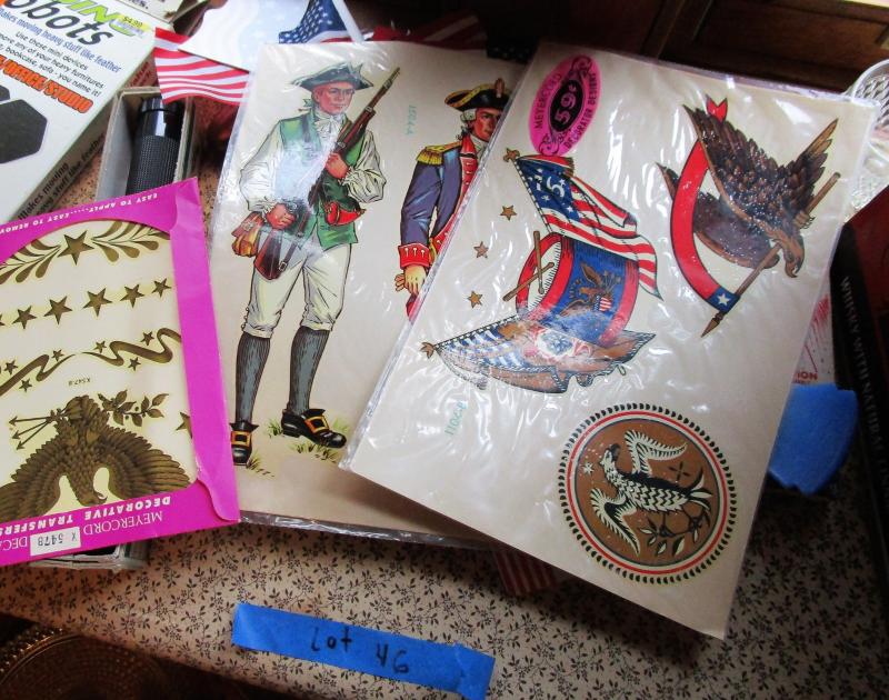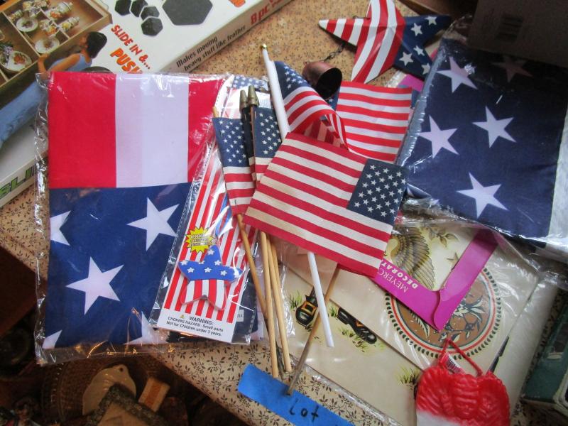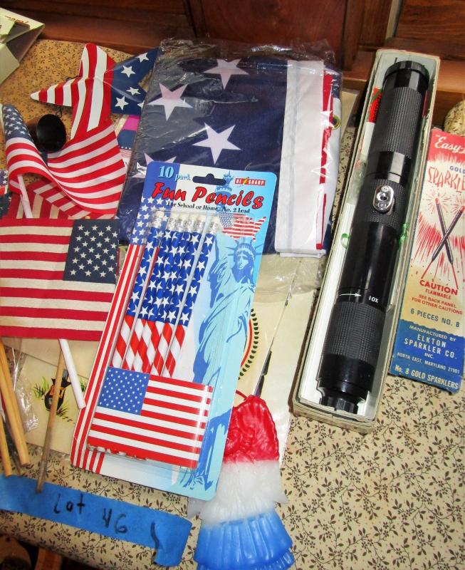 Decals flags, sparklers, candles and a hand held telescope all in original packaging
