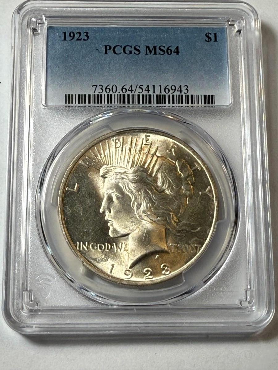 PCGS CERTIFIED 1923-P MS64 PEACE SILVER DOLLAR AS PICTURED. $5 DOMESTIC SHIPPING.
