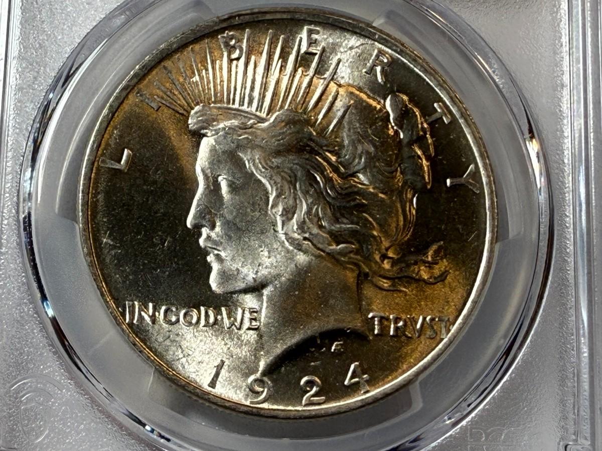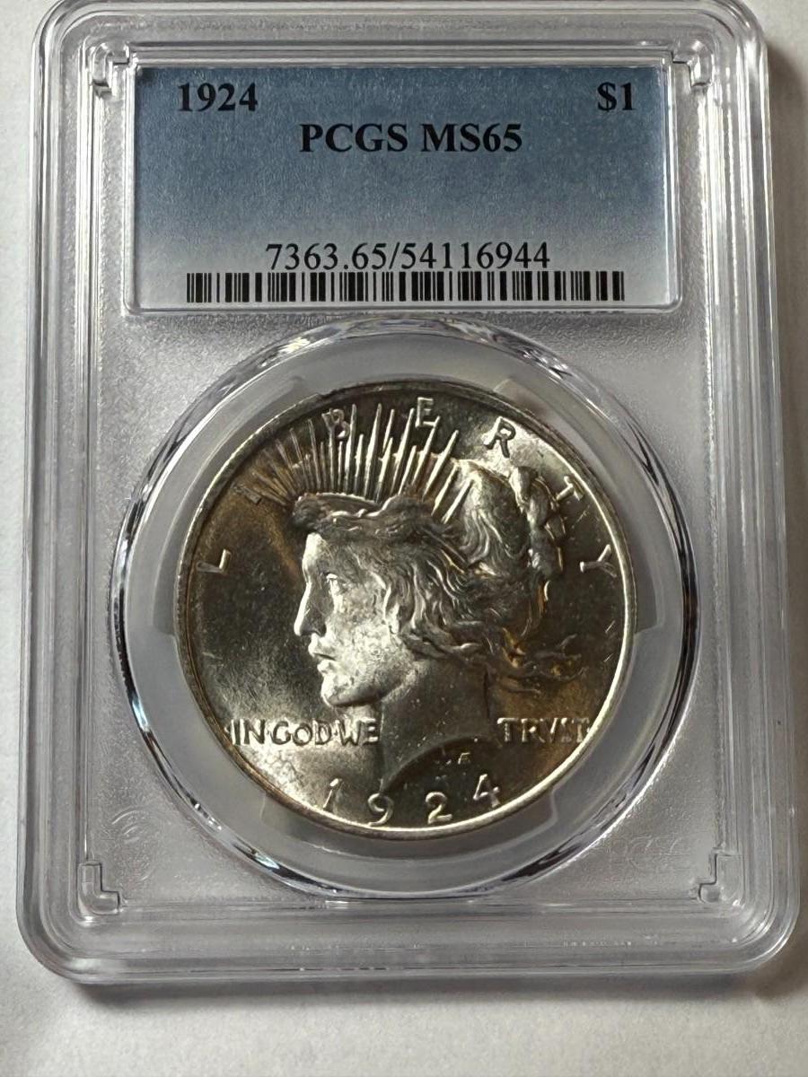PCGS CERTIFIED 1924-P MS65 PEACE SILVER DOLLAR AS PICTURED. $5 DOMESTIC SHIPPING.