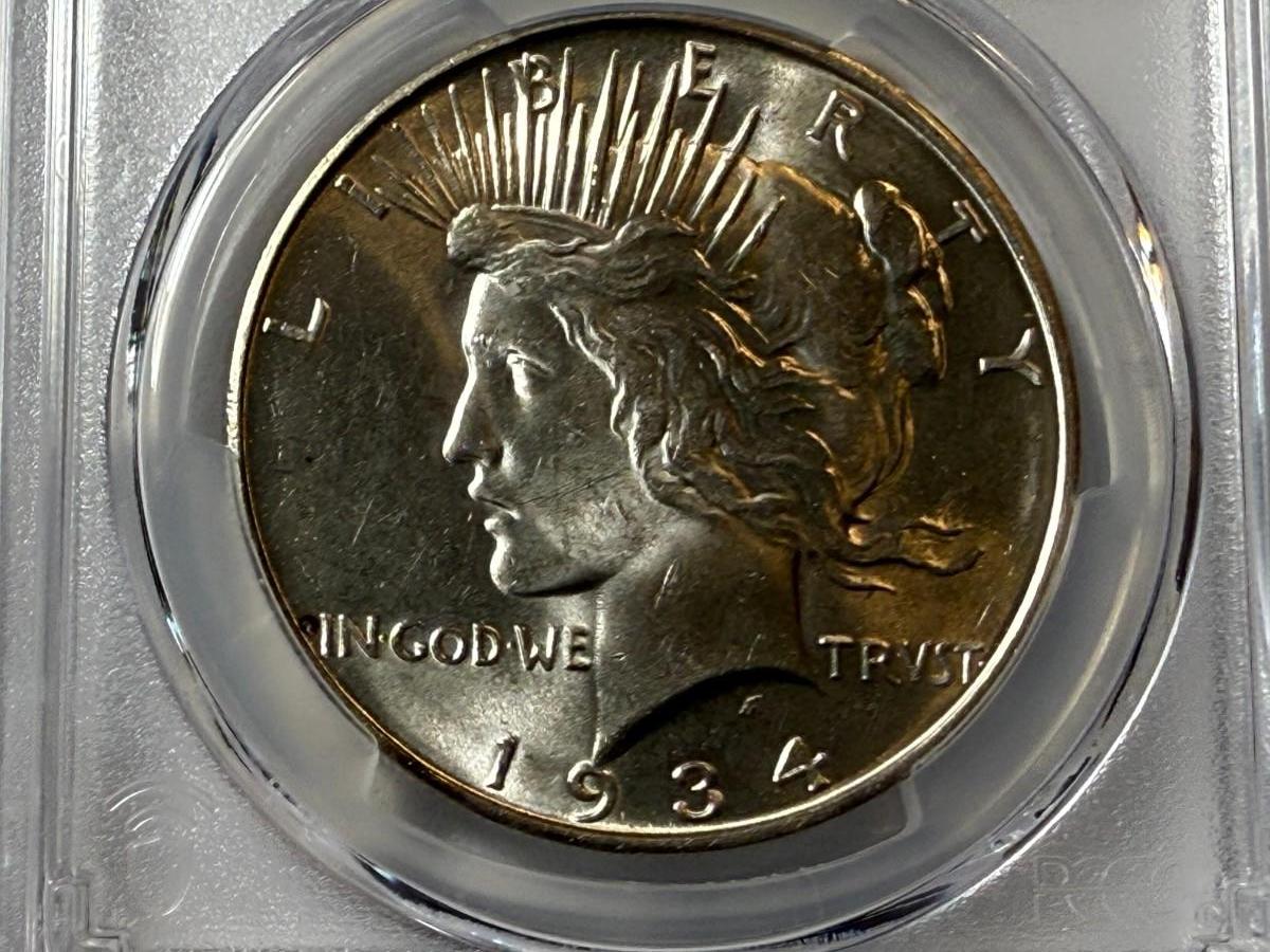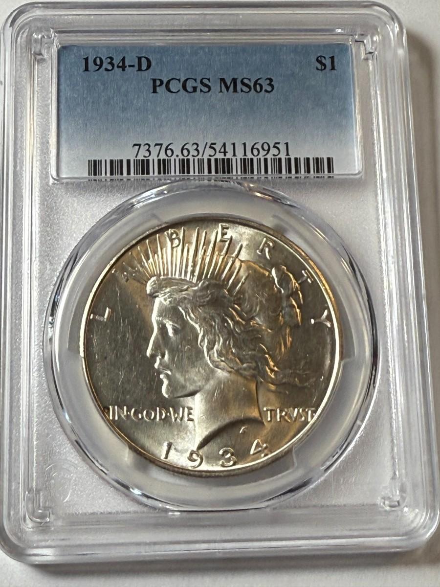 PCGS CERTIFIED 1934-D MS63 PEACE SILVER DOLLAR SEMI-KEY DATE AS PICTURED. $5 DOMESTIC SHIPPING.