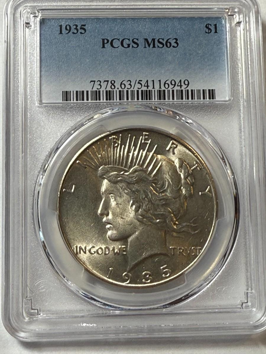 PCGS CERTIFIED 1935-P MS63 PEACE SILVER DOLLAR BETTER DATE AS PICTURED. $5 DOMESTIC SHIPPING.