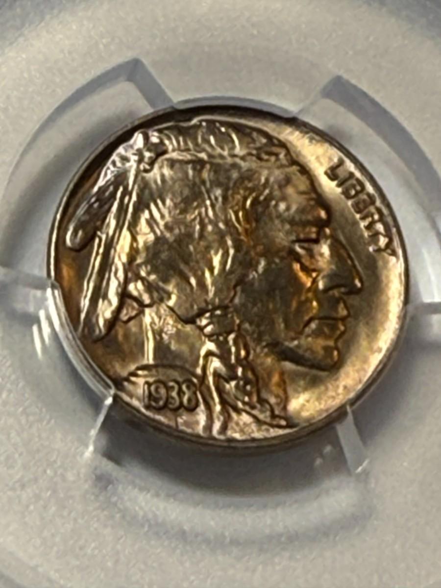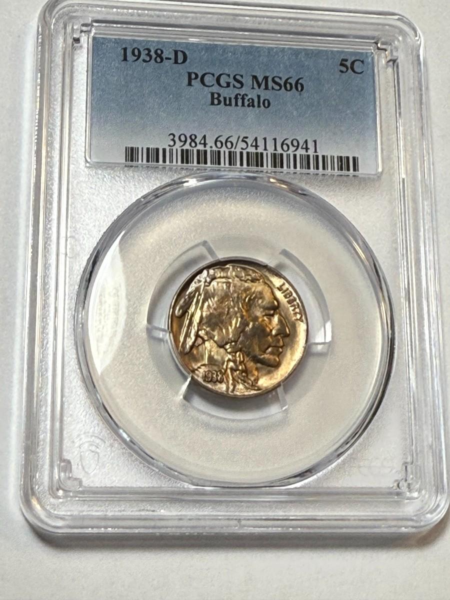 PCGS CERTIFIED 1938-D MS66 GOLDEN TONED BUFFALO NICKEL AS PICTURED.