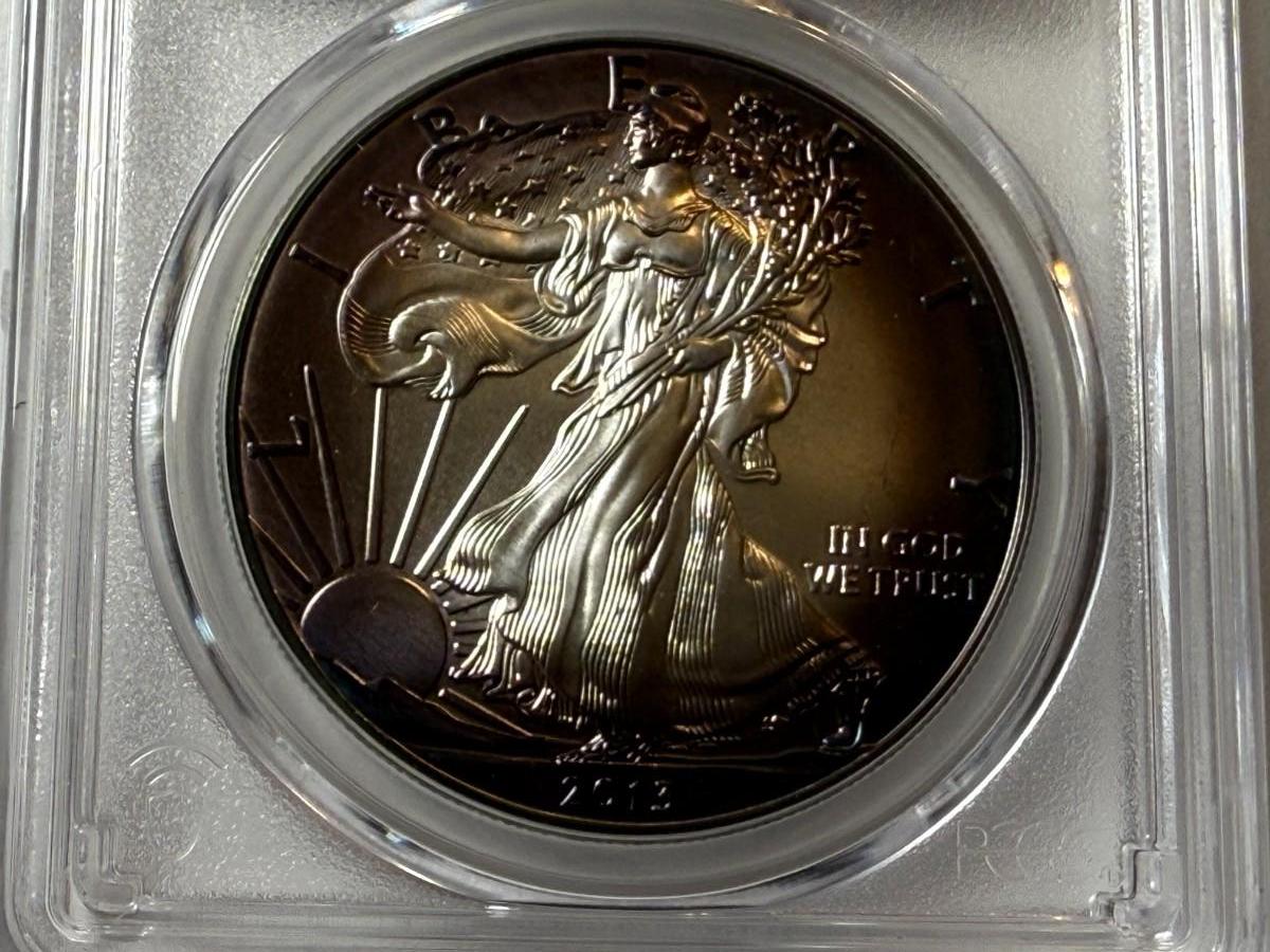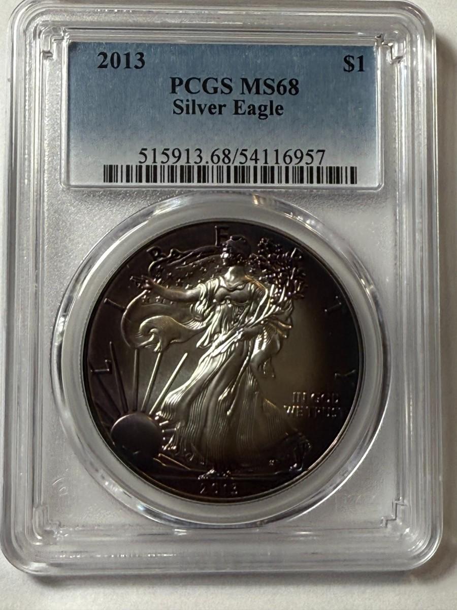 PCGS CERTIFIED 2013 MS68 HEAVILY TONED RIMS OBV. SILVER EAGLE DOLLAR AS PICTURED. $5 DOMESTIC SHIPPING.