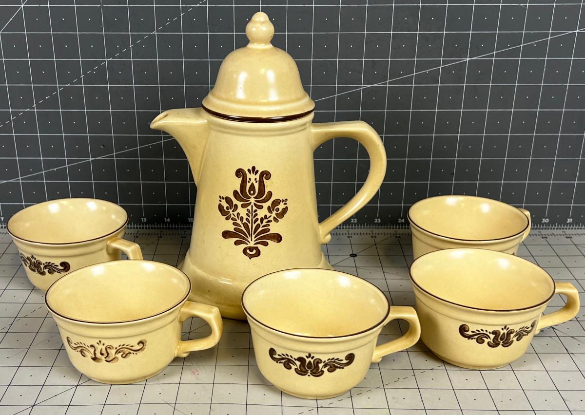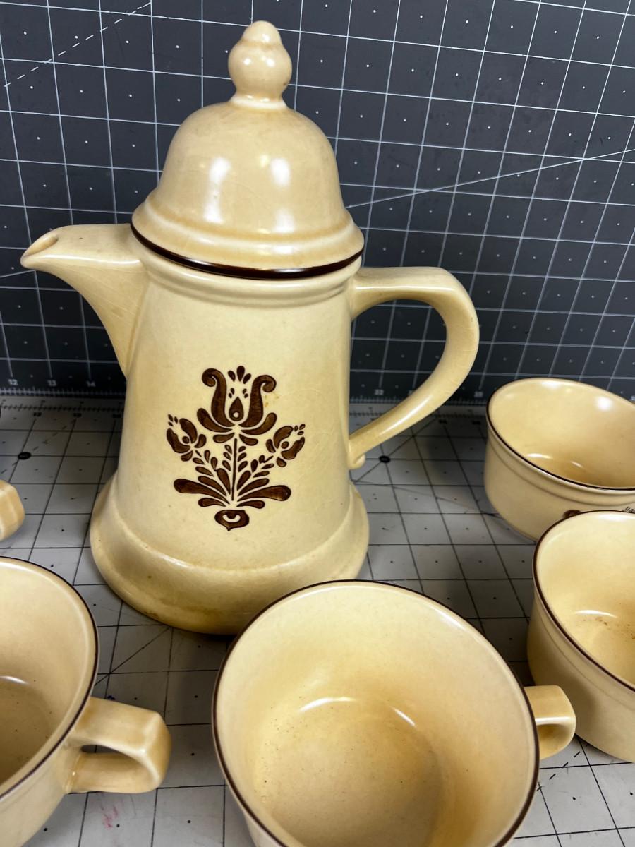 Pfaltzgraff Stoneware Coffee Pot and Cups