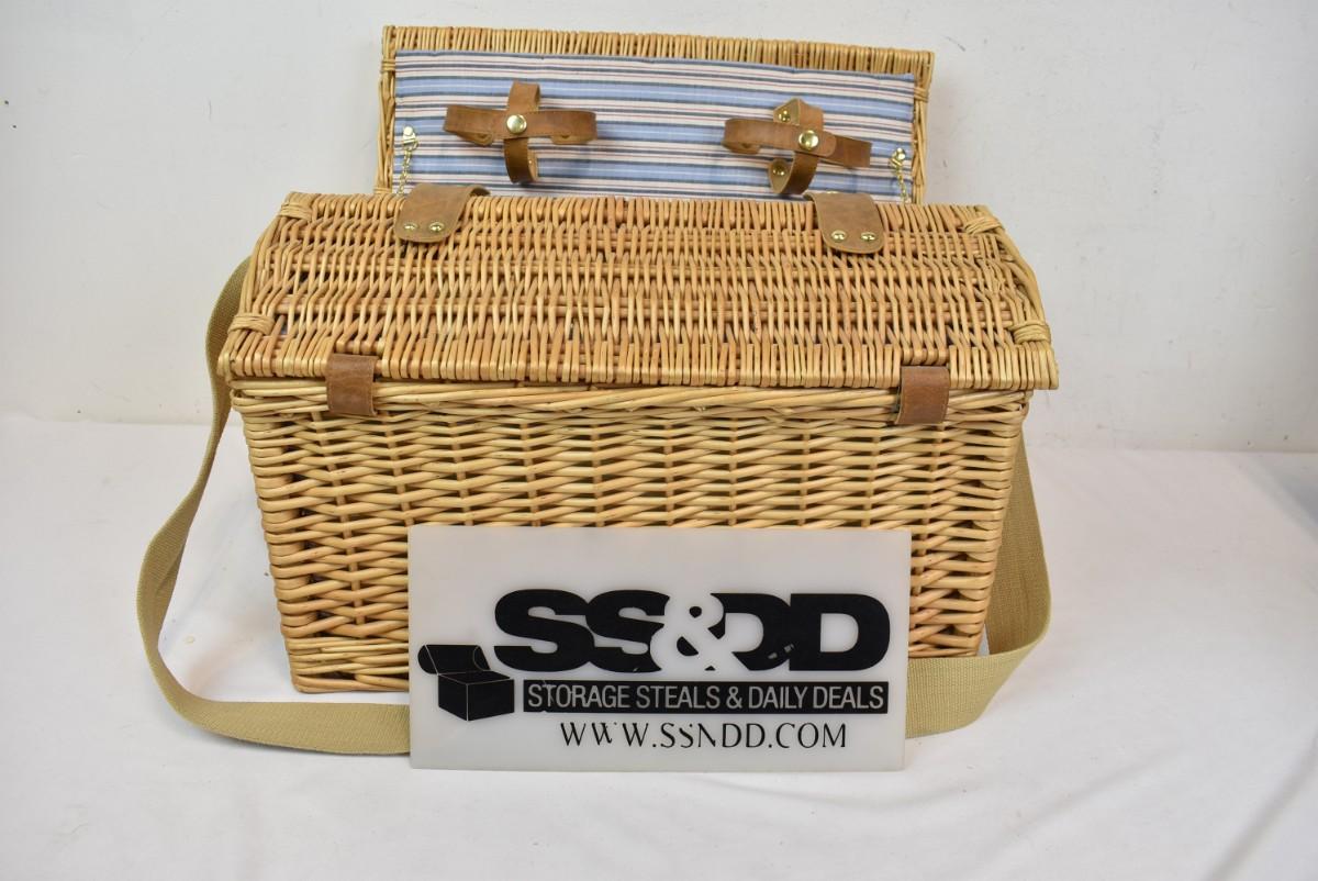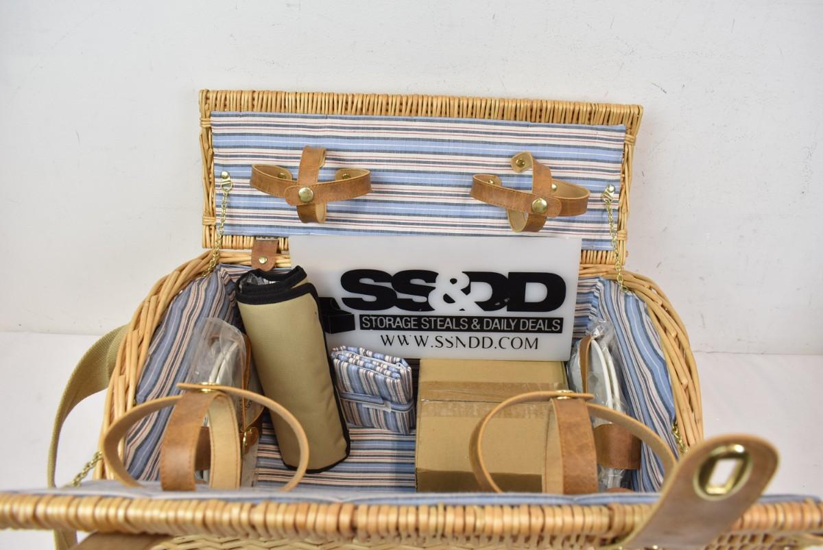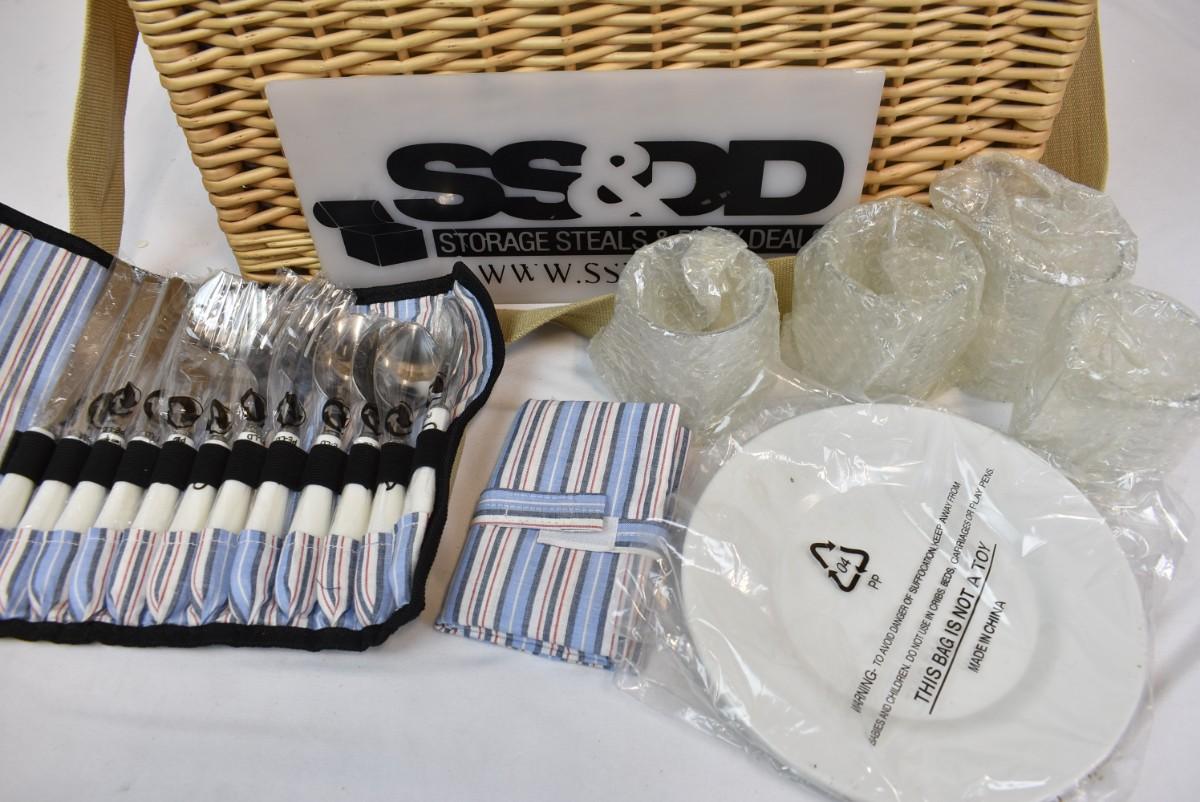 Picnic Basket with Service for Four - Plates, Glasses, Silverware - New