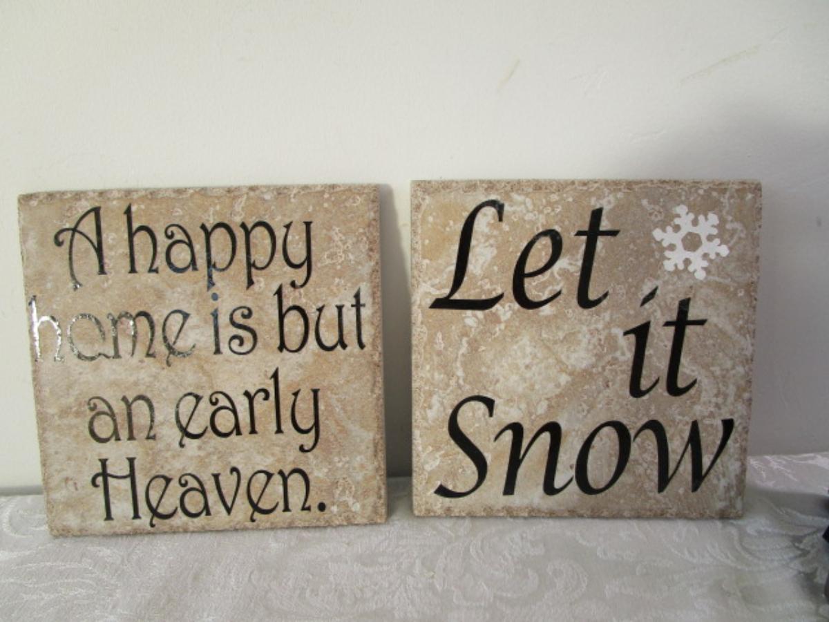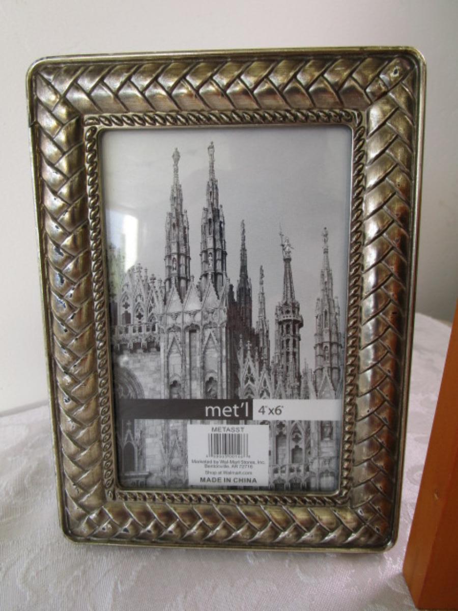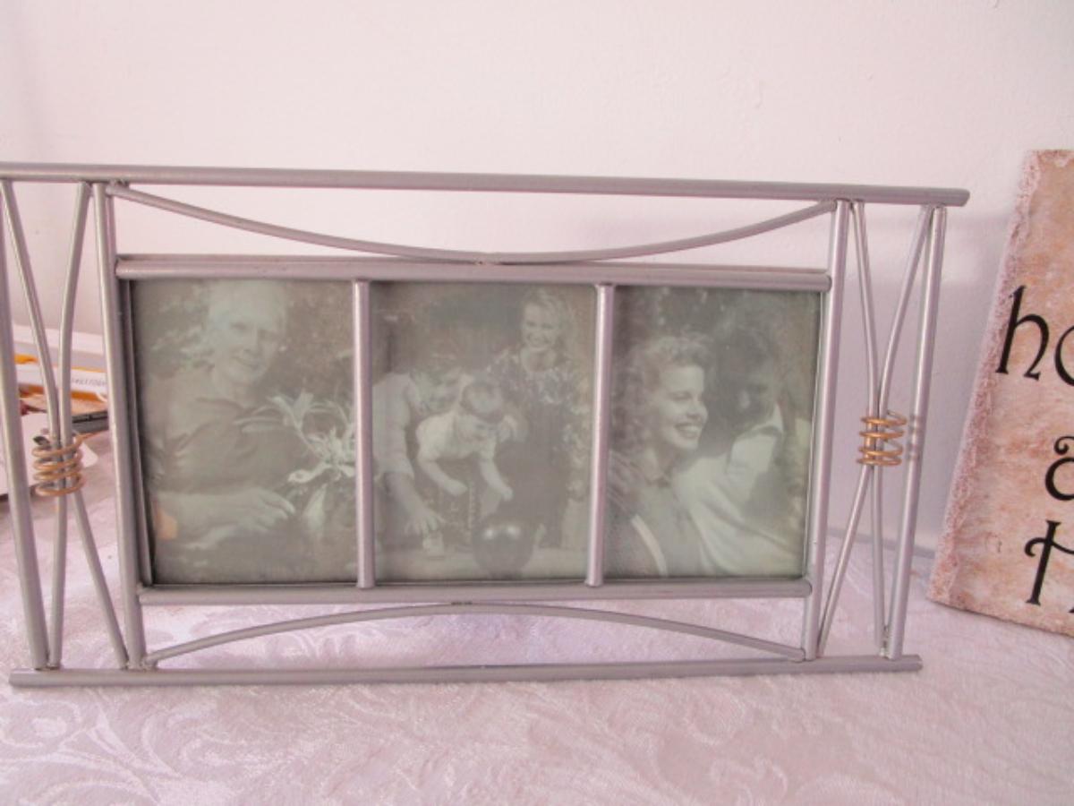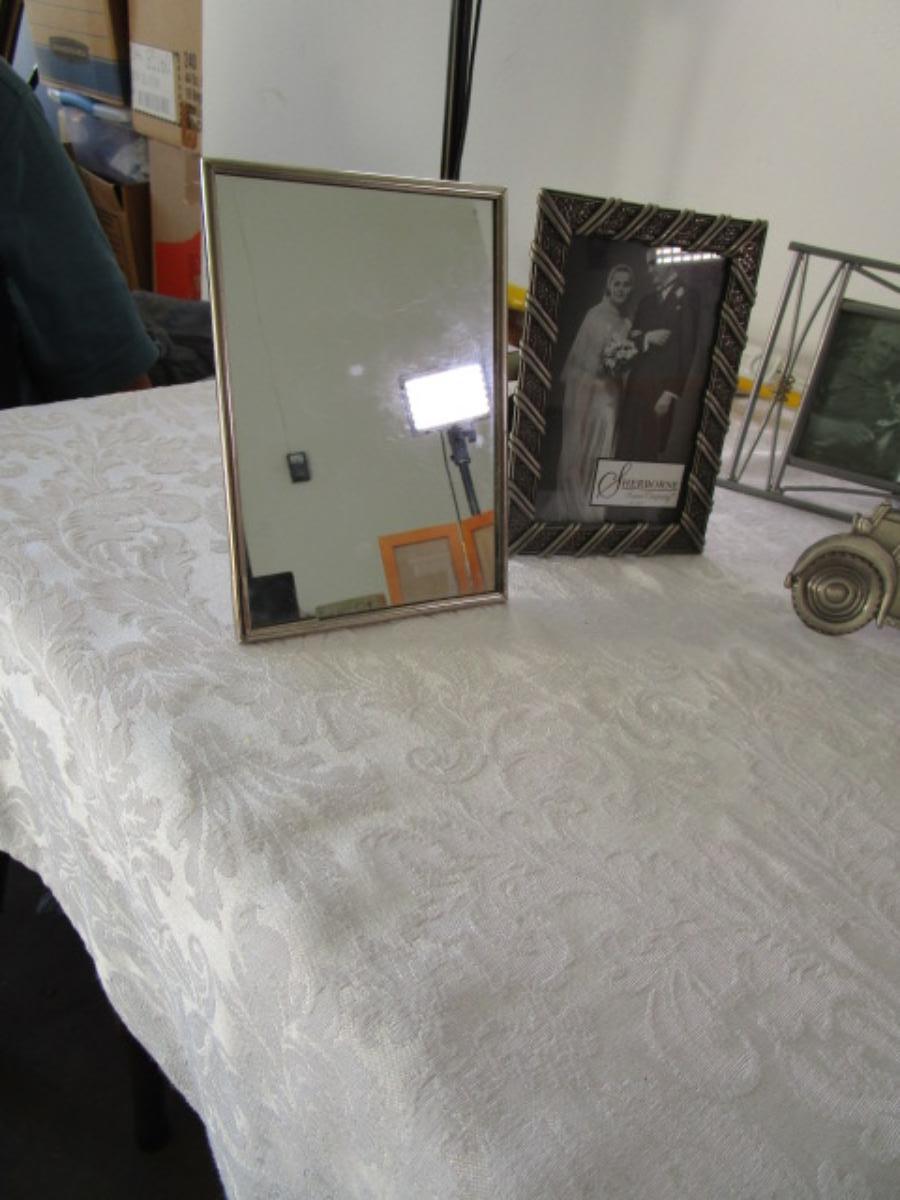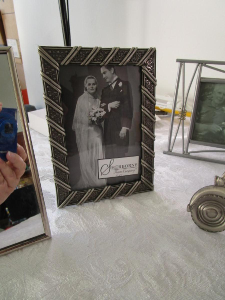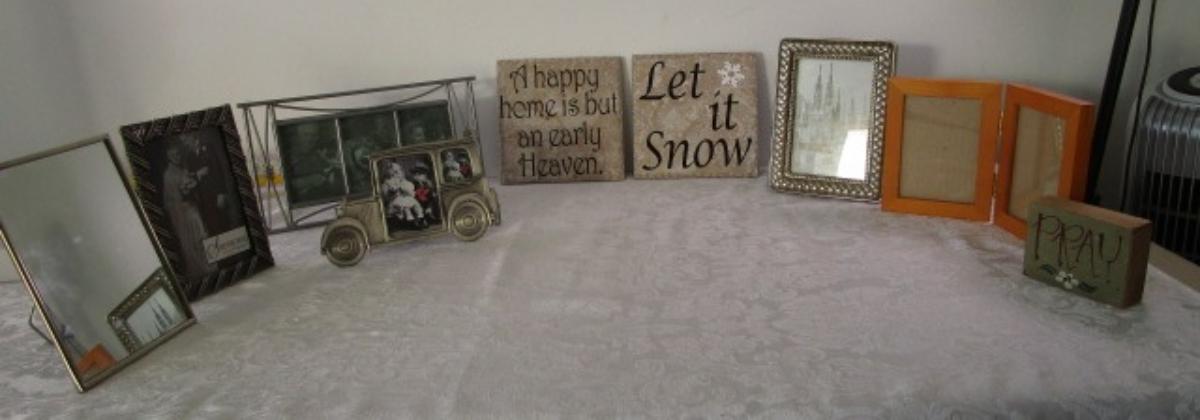 2 stone & 1 wood plaques, 1 hinged 2-picture frame, 4 additional picture frames, 1 mirror, see pictures