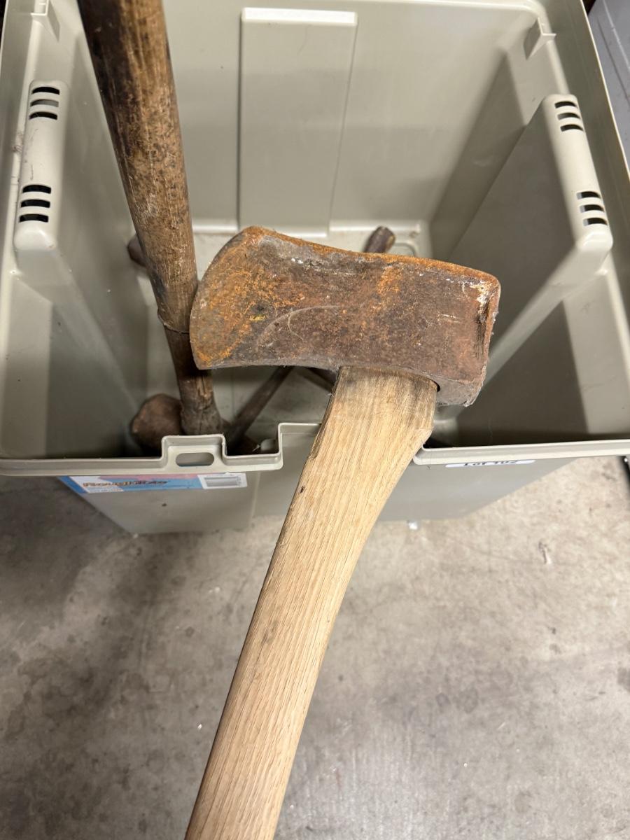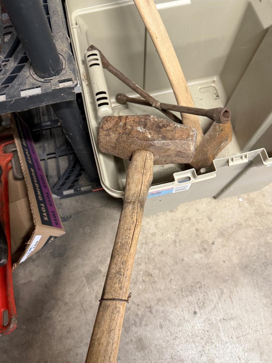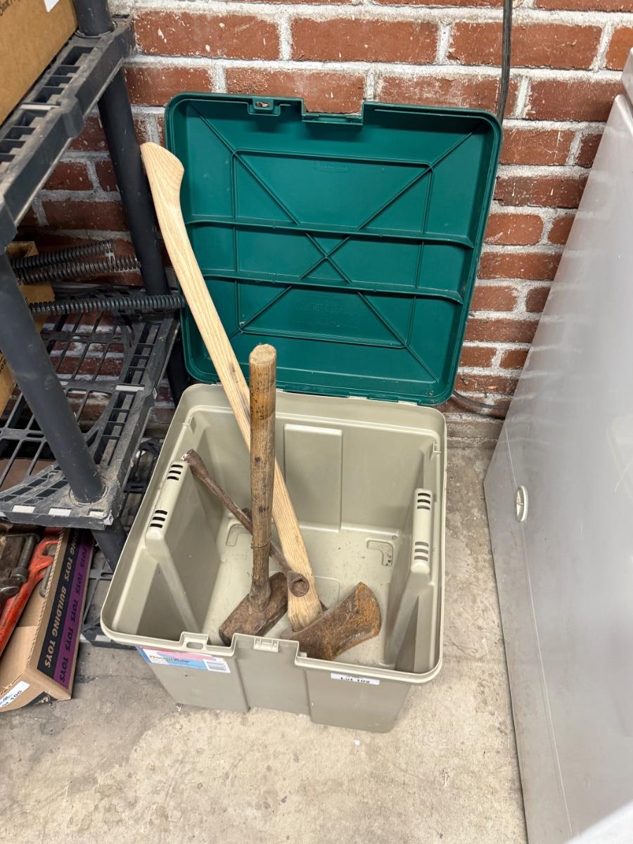 Plastic Storage Bin with Sledge Hammer / Axe / Lug Nut Tool