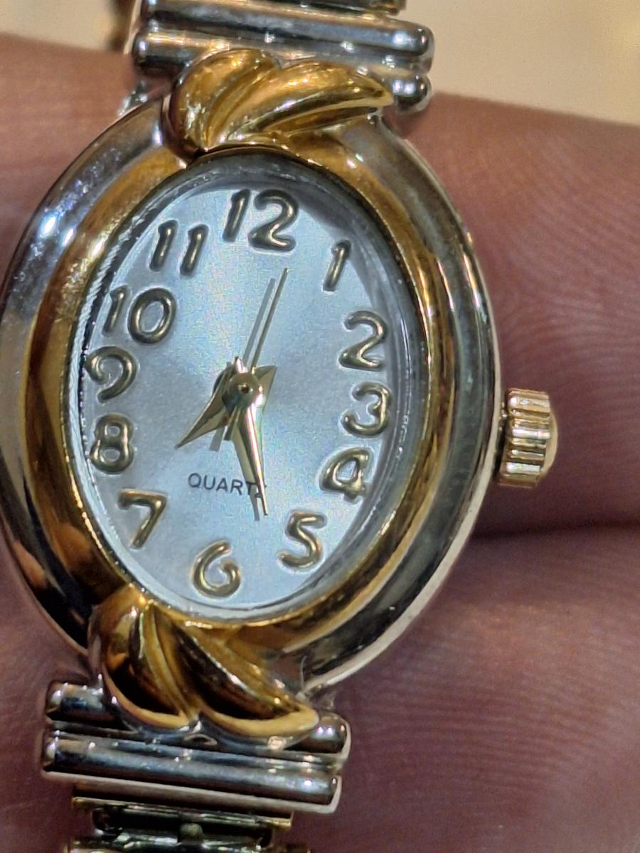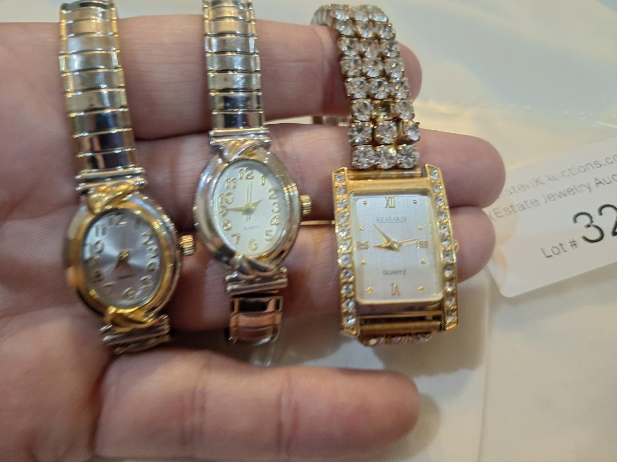 the one with the rhinestones has a stone missing, see first photo above the watch 3 positions.