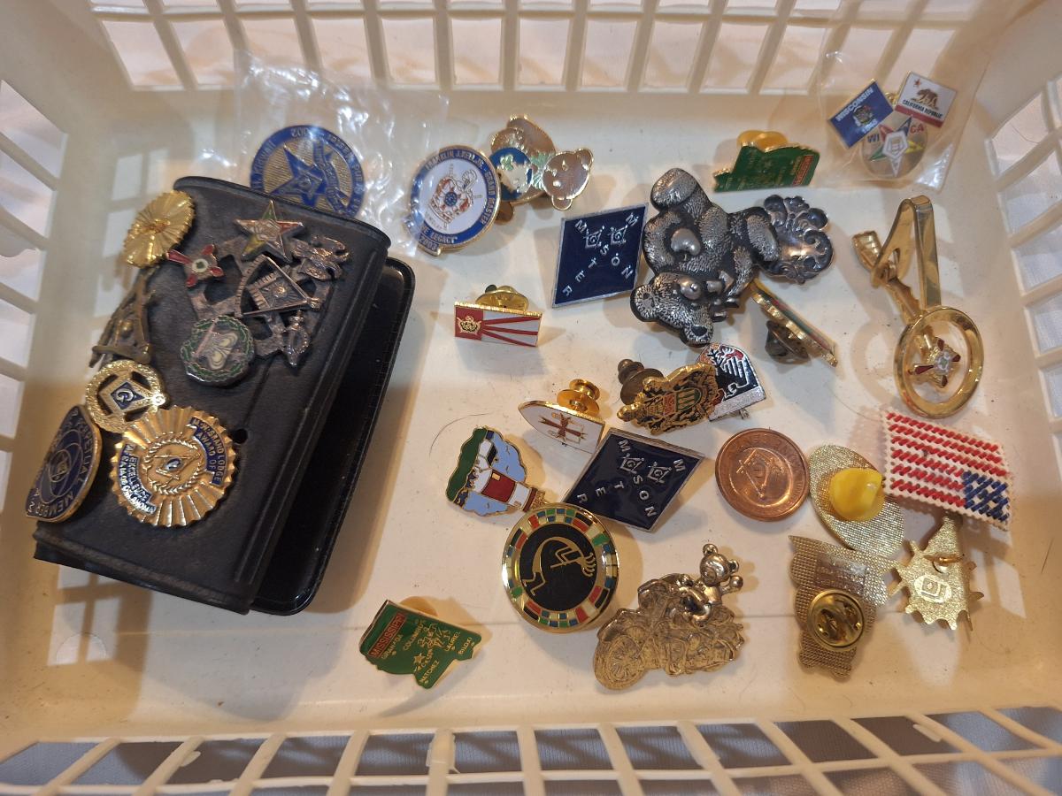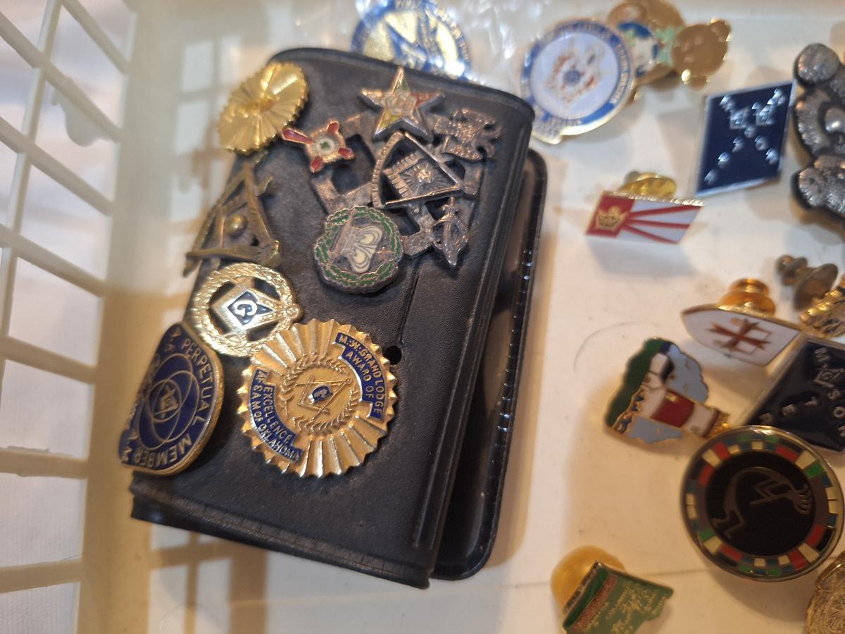 Masonic or free mason related pins, brooches and other items. Eastern star and other