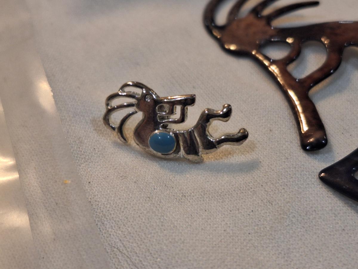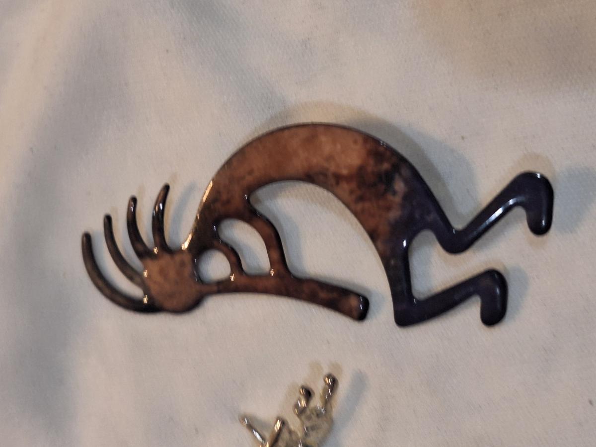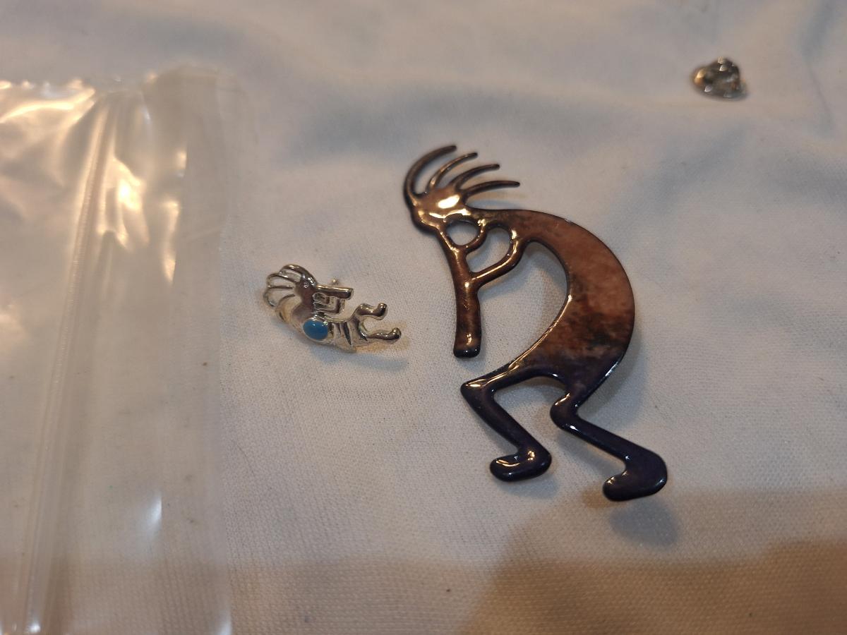 Kokopelli Brooch, enamel Zuni pin and smaller lapel pin