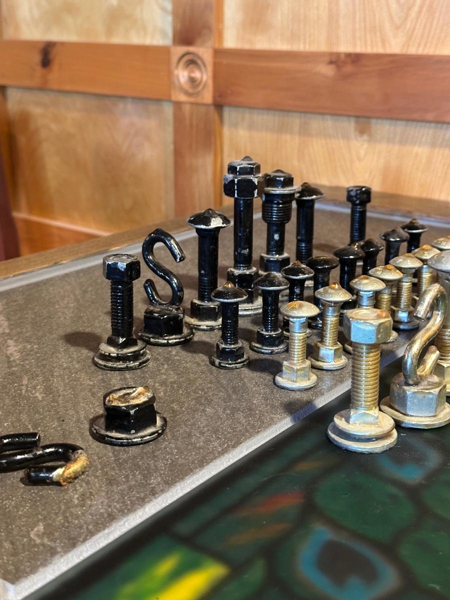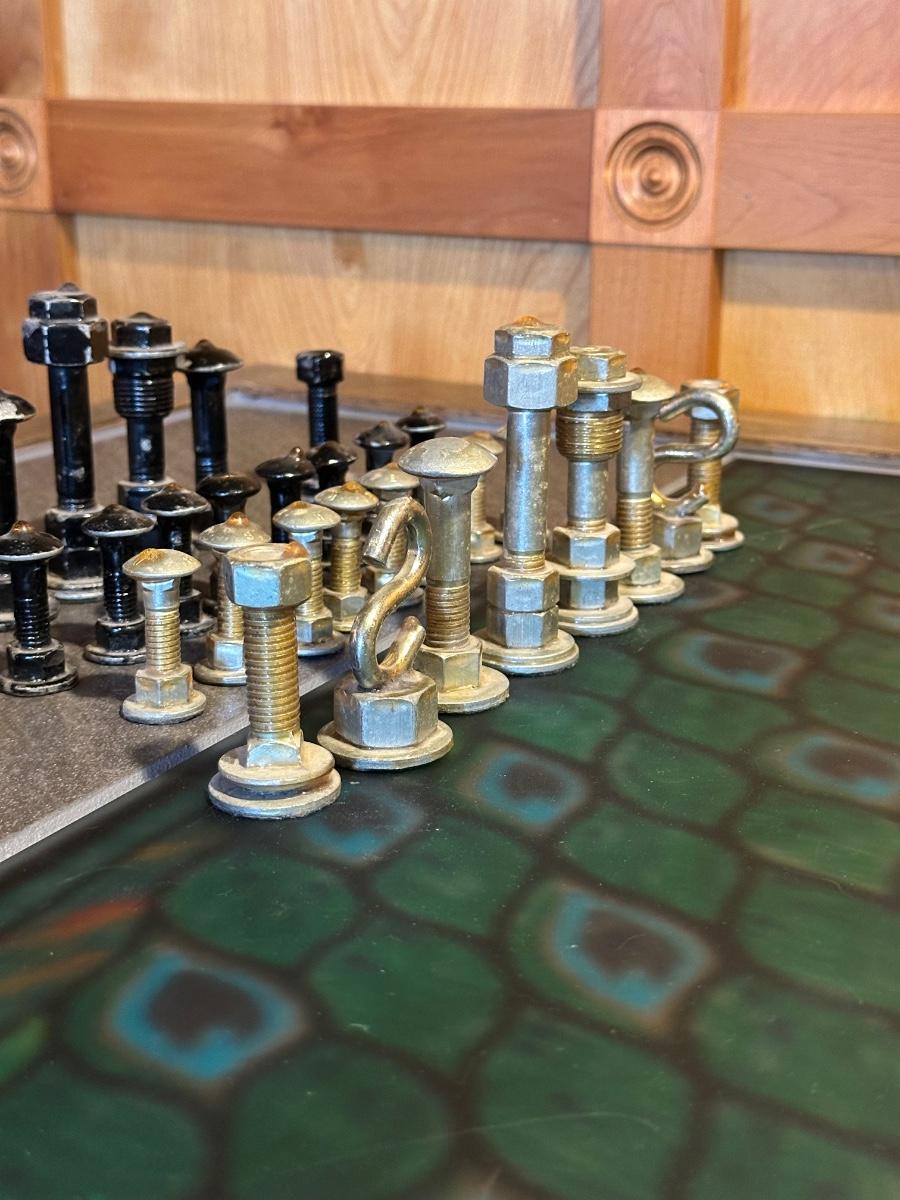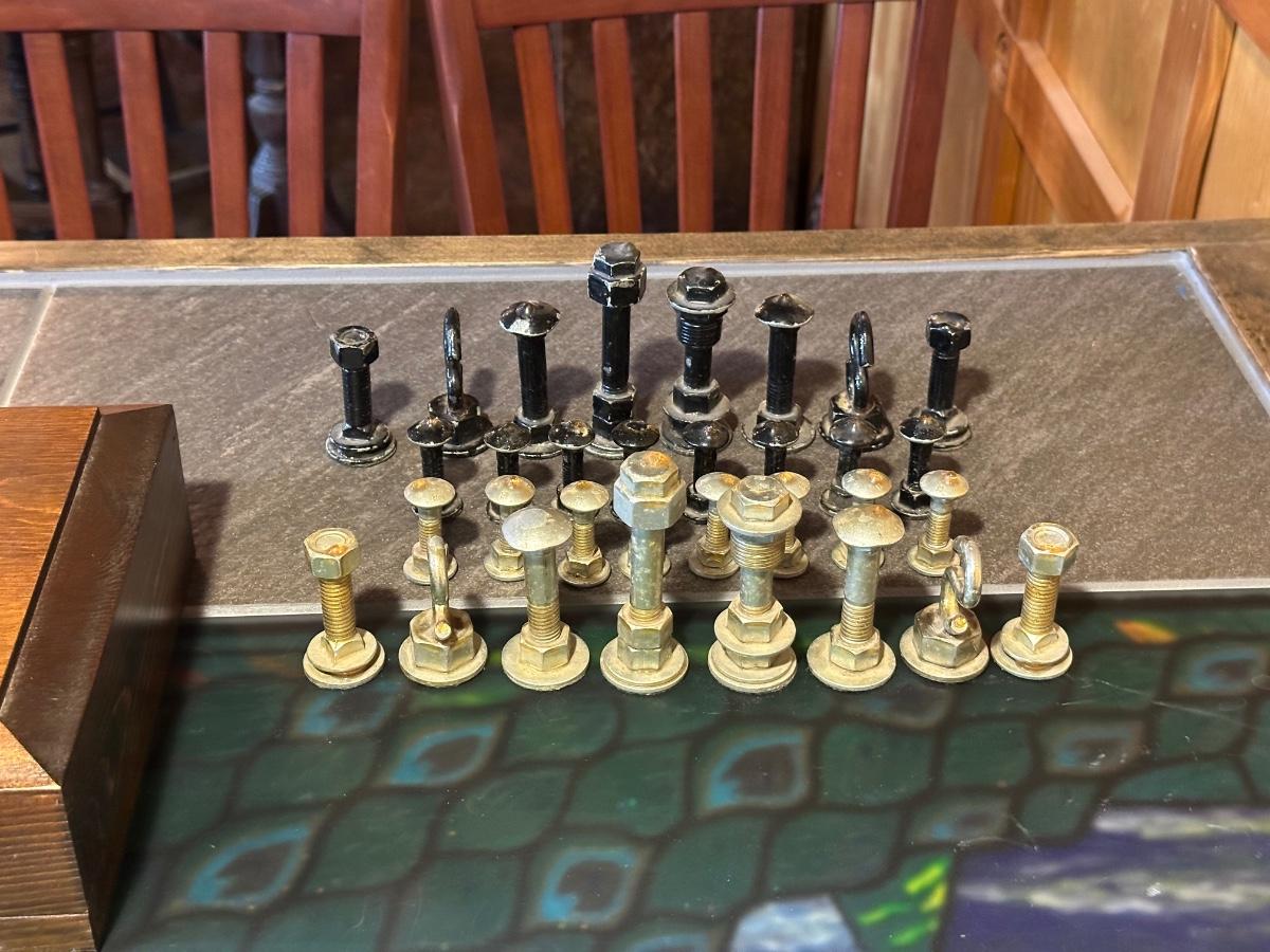 POKER CHIPS IN A WOODEN BOX AND UNIQUE CHESS PIECES