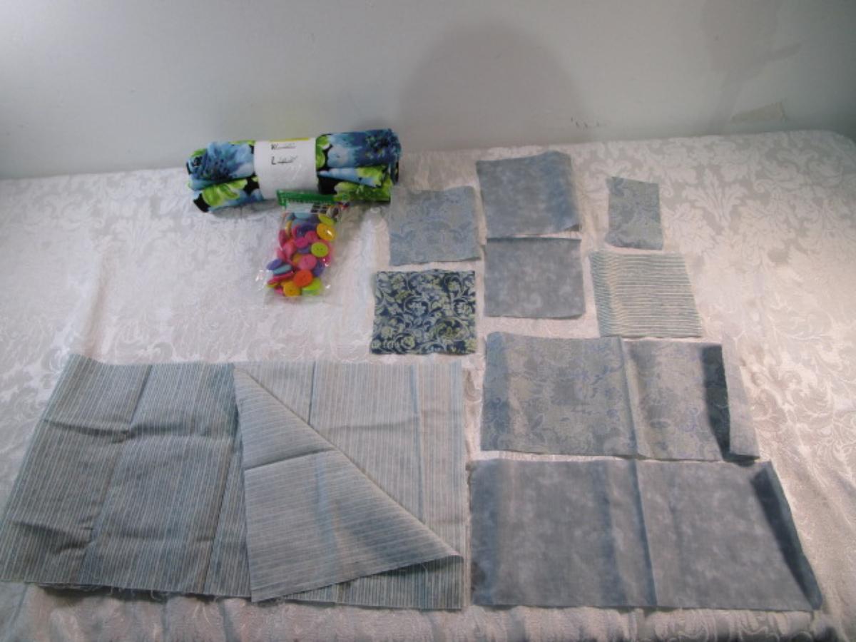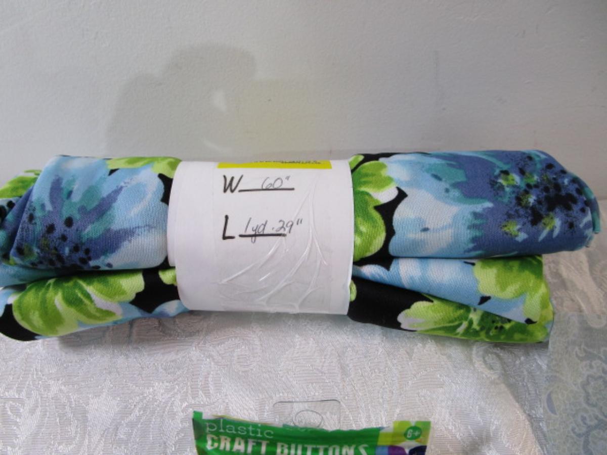 Poly print floral fabric 60" wide x 1 yd, fabric pieces for quilting, 1 pkg buttons