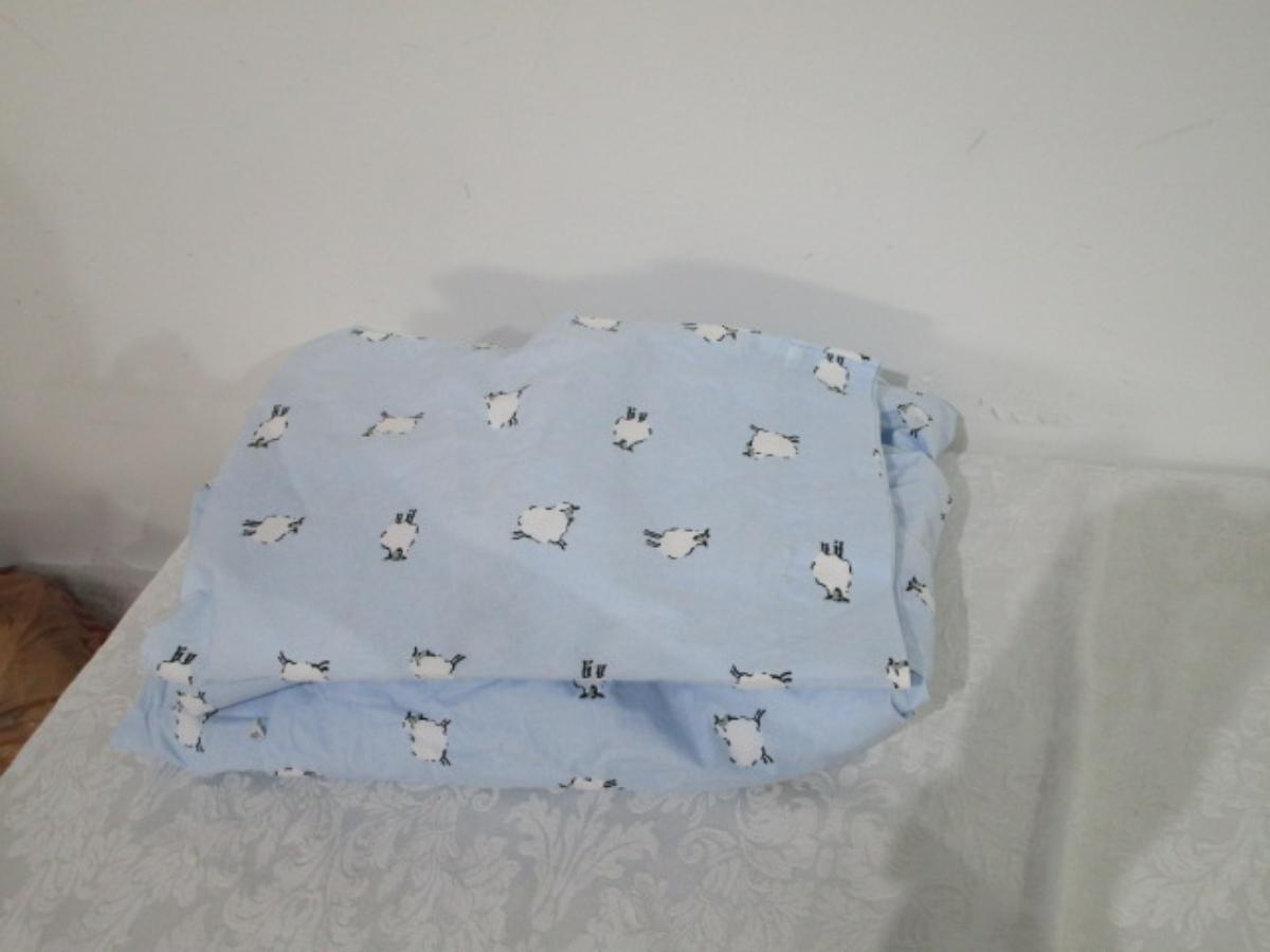 Fitted sheet, top sheet, pillow case, blue with sheep, See pictures