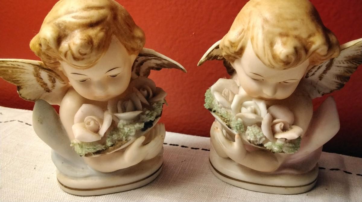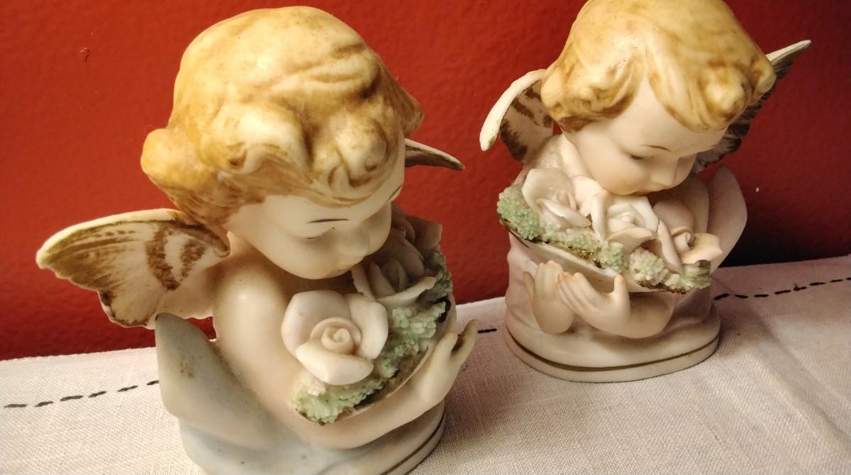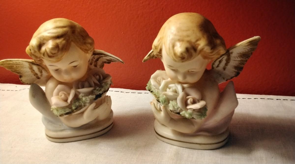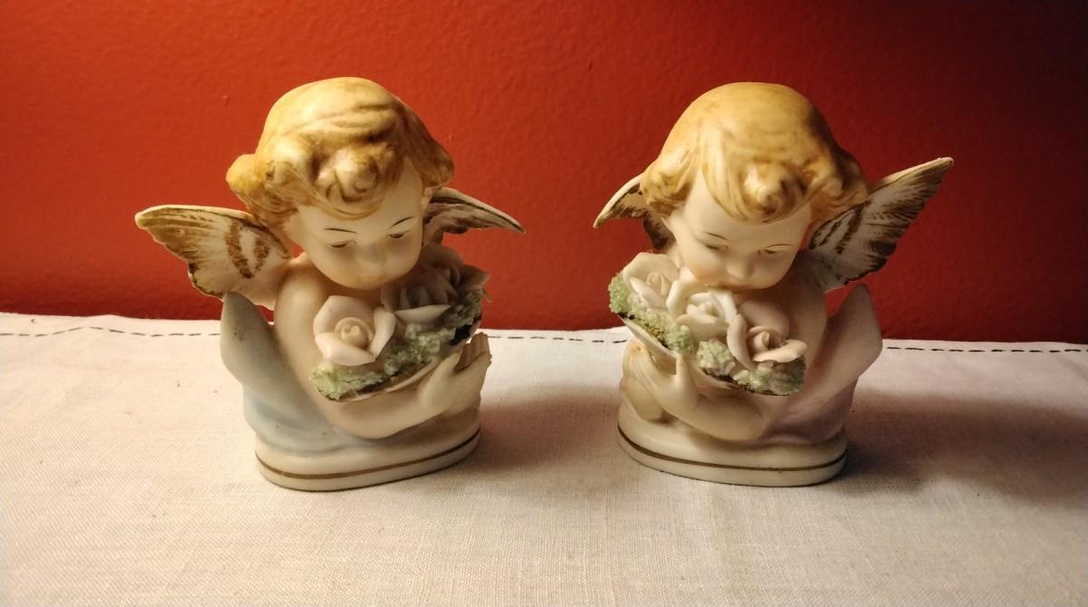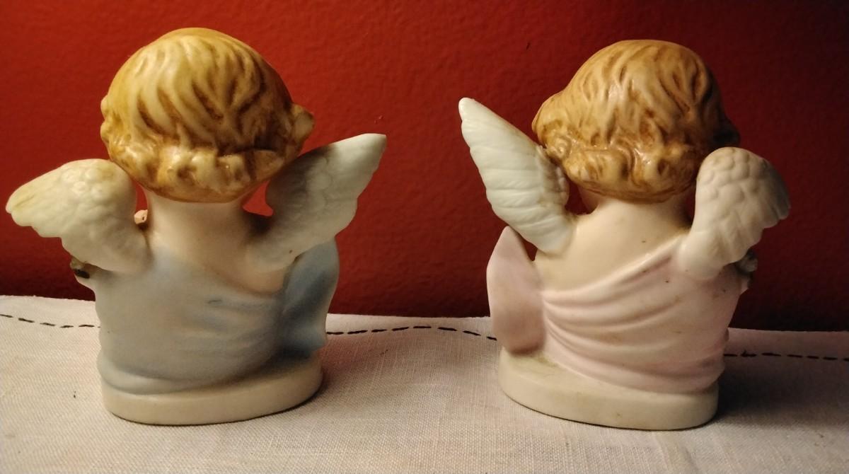 Made in Japan.Tilso Boy & Girl cherub bust, bisque finish.Tilso sticker on base. No chips, cracks or crazing.