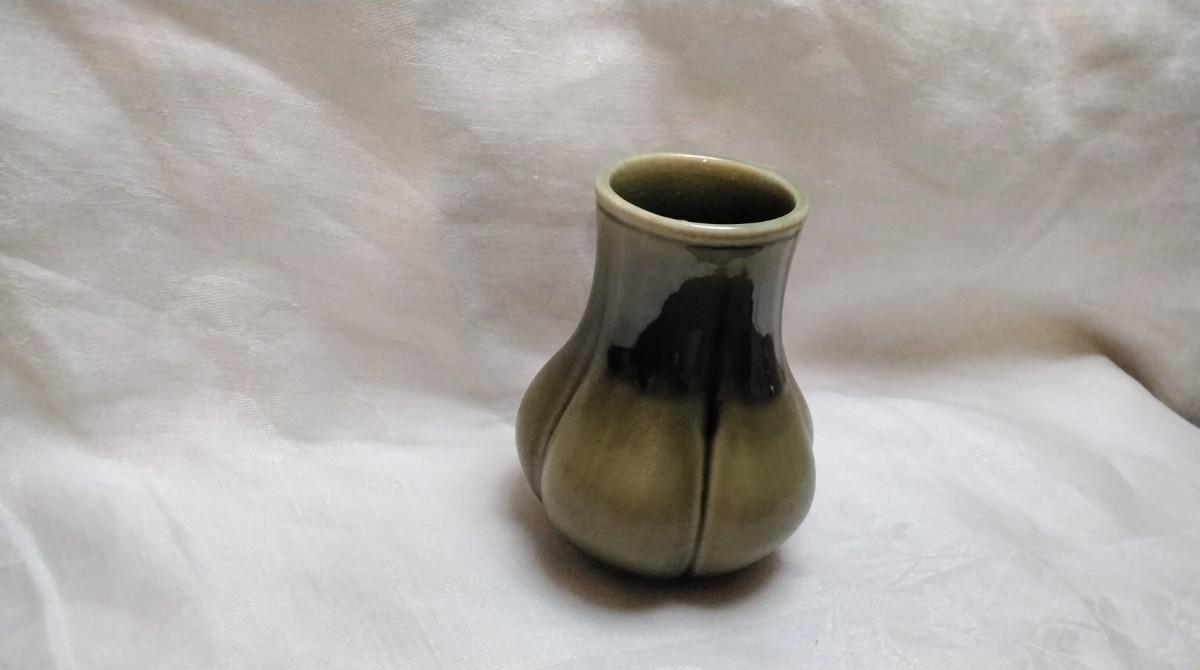 Sweet Clove Vase, created by artist Kataro Shirayamadani in 1928, was named for and inspired by the shape of a garlic clove. Vase Measures 4.75" Tall by 3.75" wide. No chips, cracks or crazing. A gorgeous piece which is a Rookwood redo as the shape was so appealing!