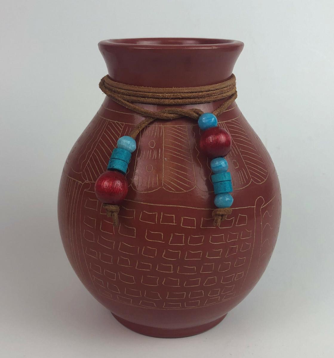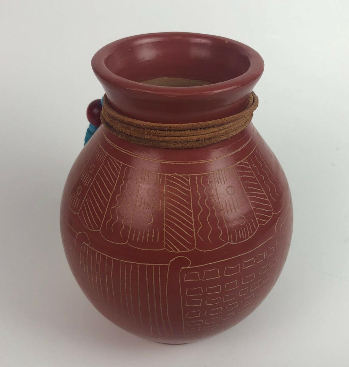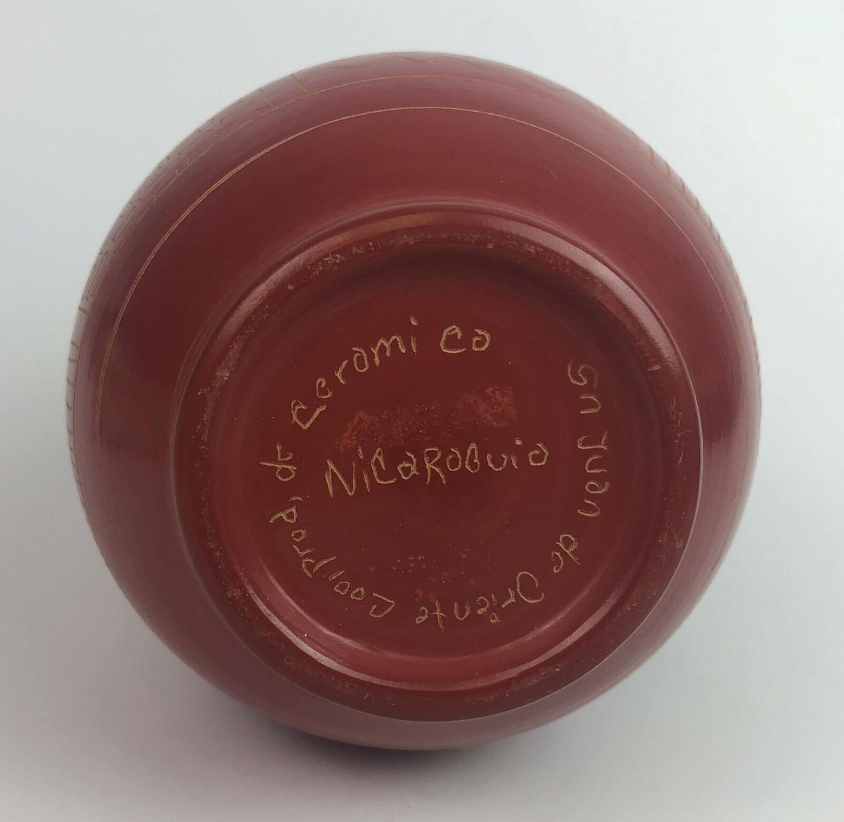 Excellent condition on this 5.5" high pottery jar done in the pre-Columbian style in San Juan de Oriente is a municipality in the Republic of Nicaragua...No chips or cracks or any damage on this import.