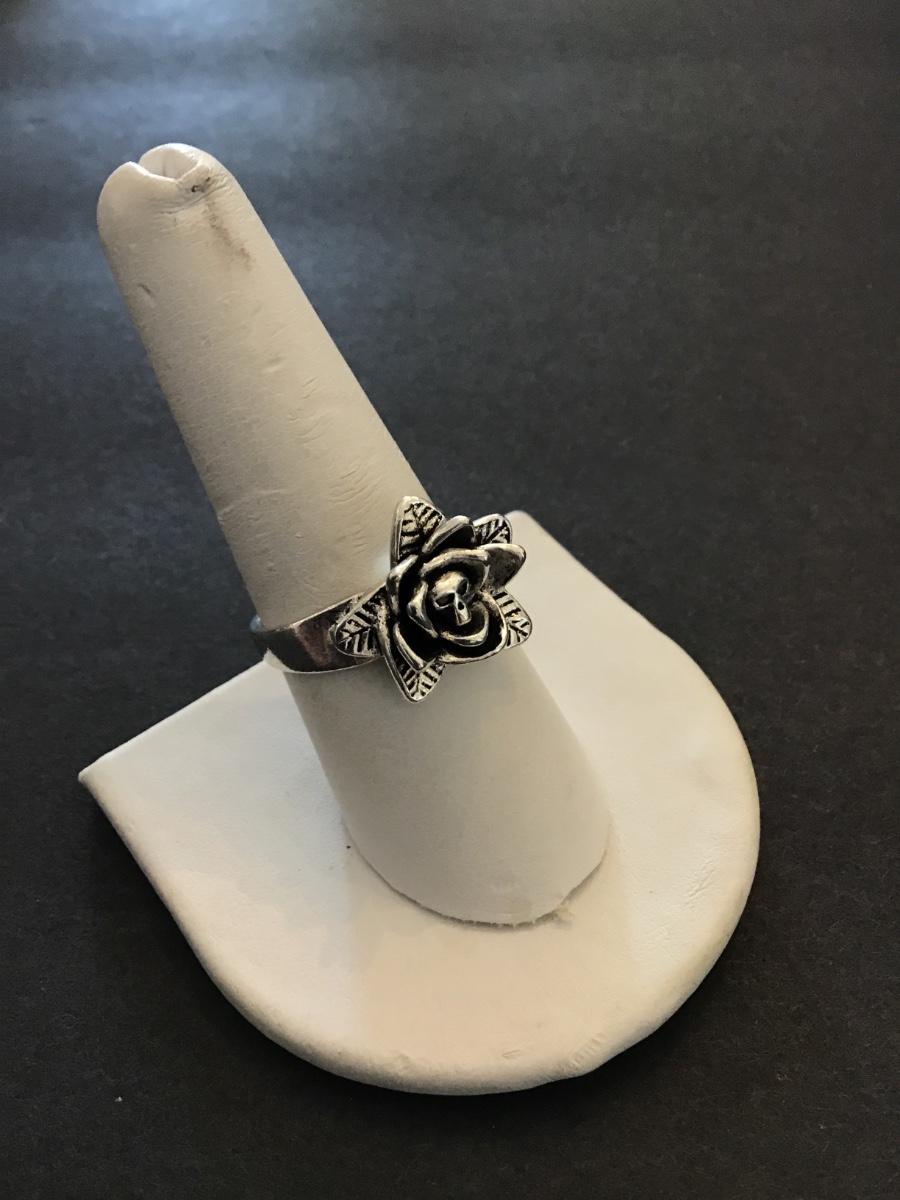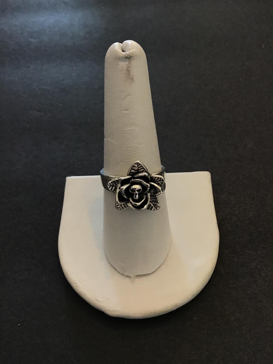 Pretty silver tone flower ring with skull