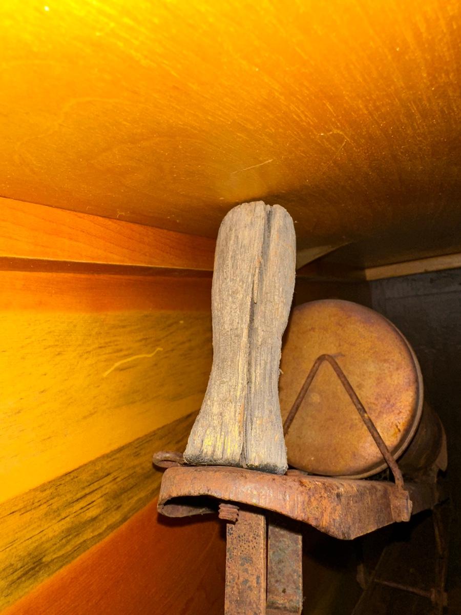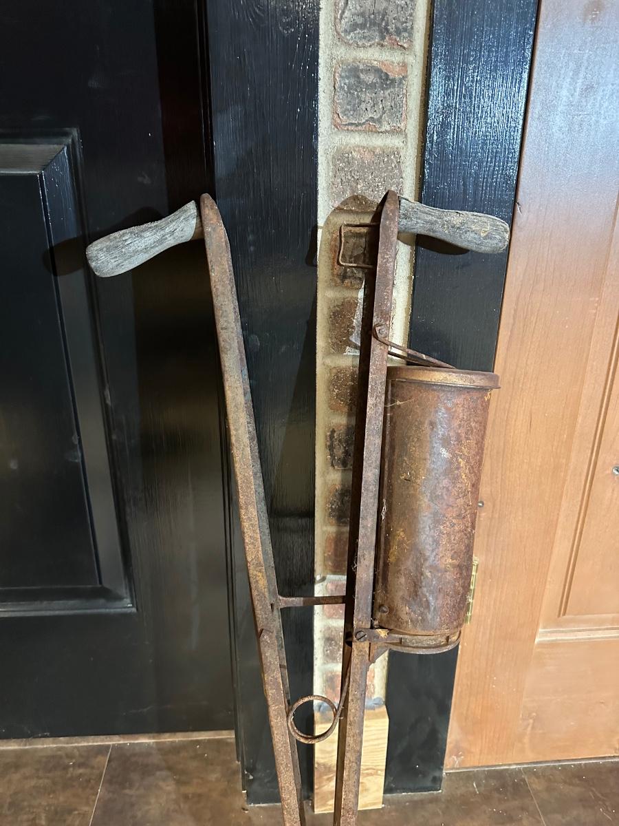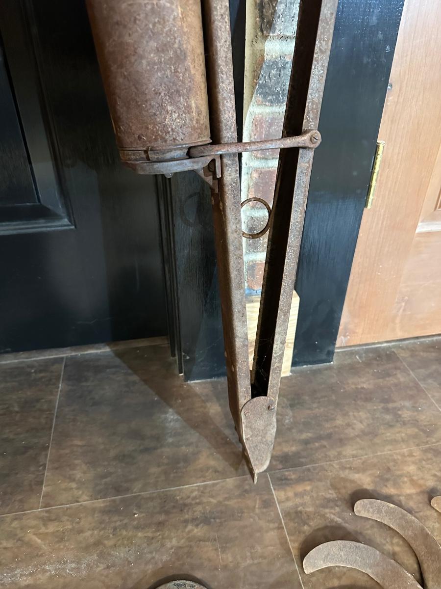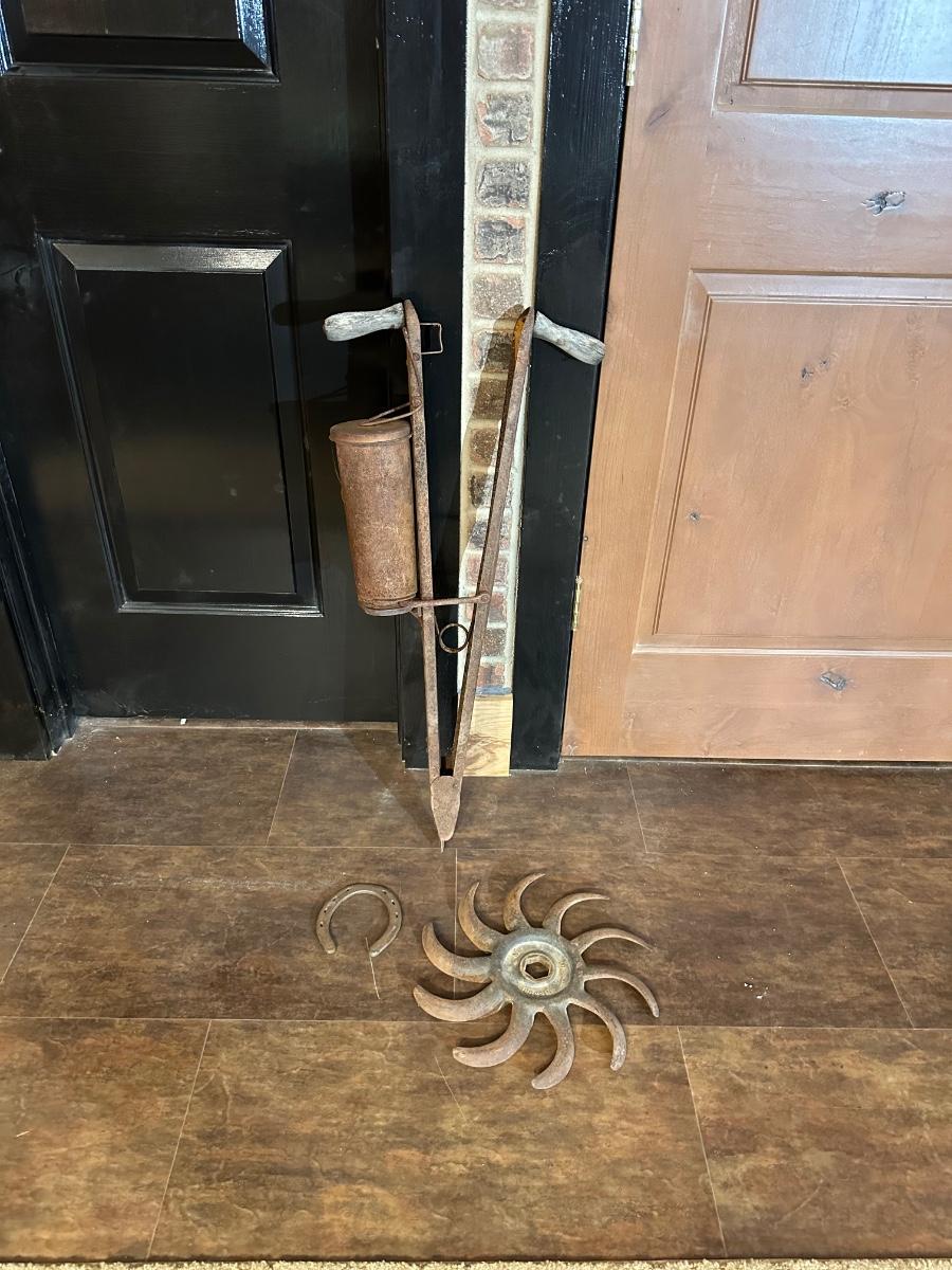 PRIMITIVE SEED PLANTER, STEEL GEAR AND A HORSE SHOE
