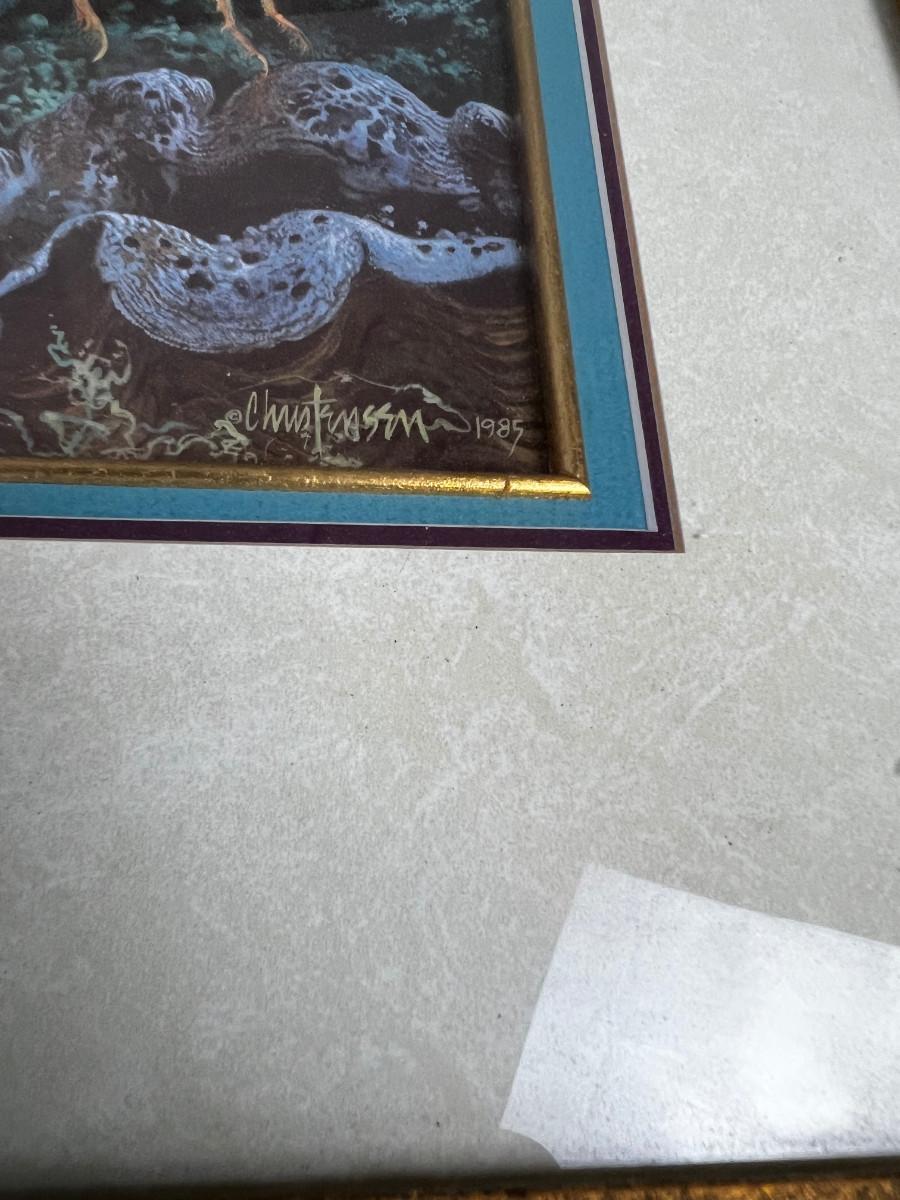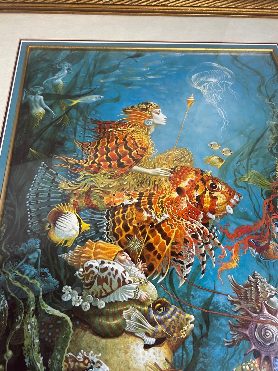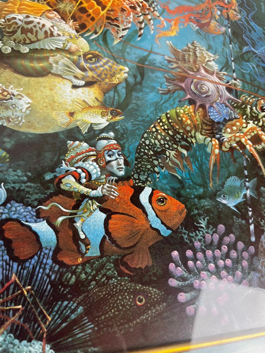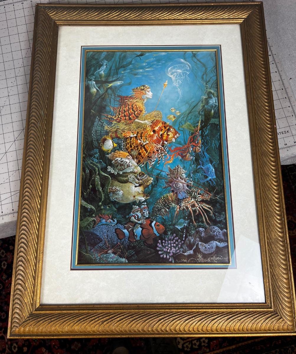 Print by Christensen Dated 1985 Fantasy Under the Sea, Framed and Matted