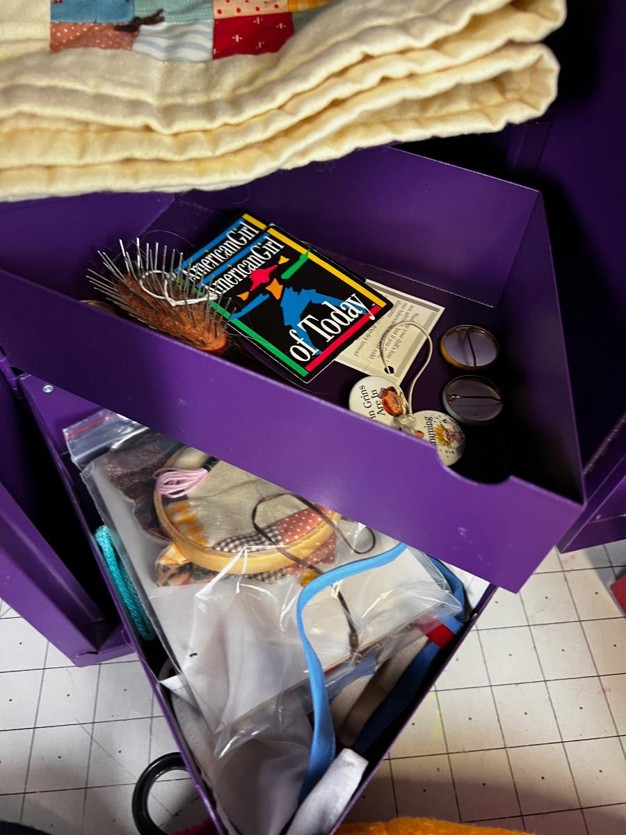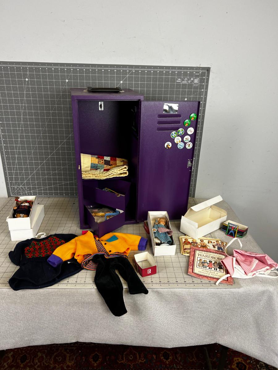 Purple Locker full of American Girl Doll Outfits, Accessories etc.