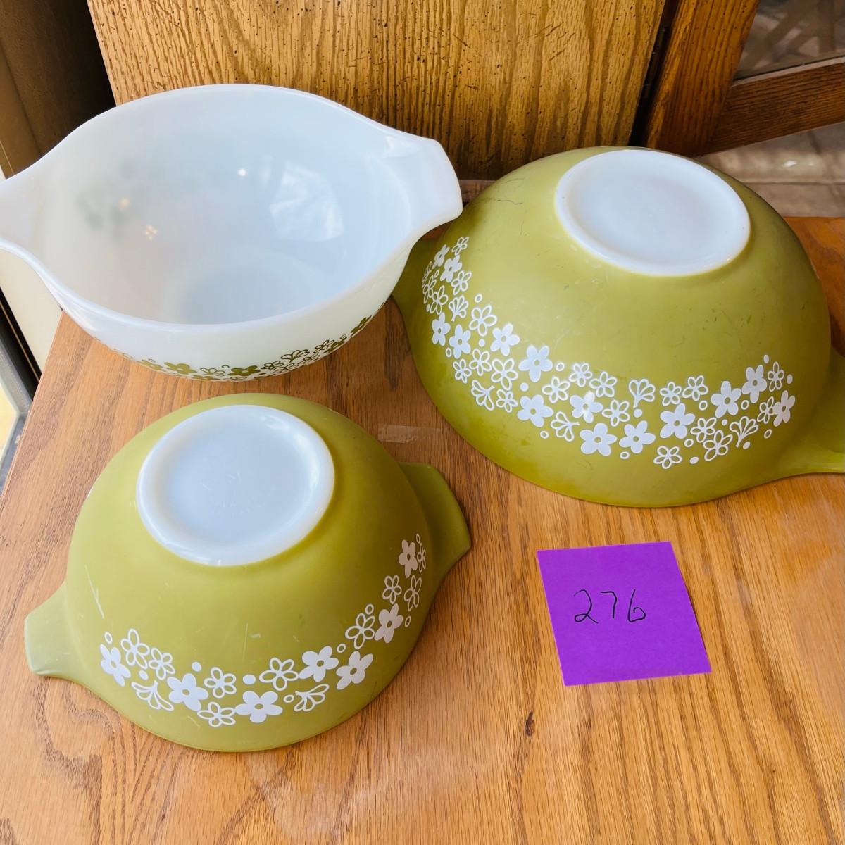 Lot of 3. Small green bowl has DWD! Large green bowl has some wear. No chips or cracks!