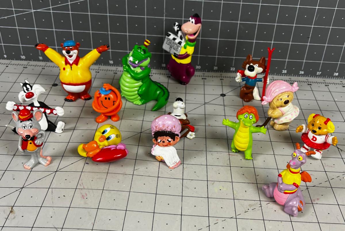 Random Plastic Animals from the 80's; Cartoon Characters, Chucky Cheese etc.,.
