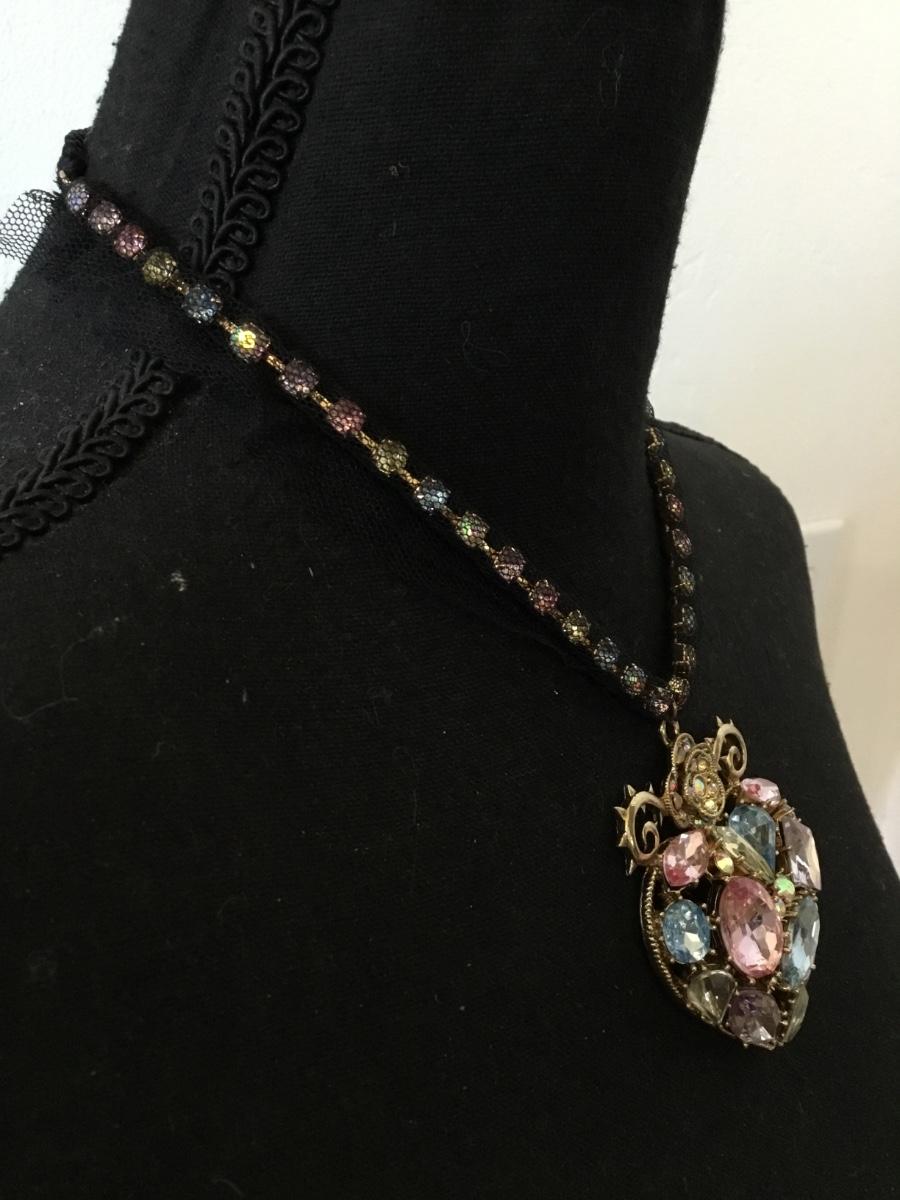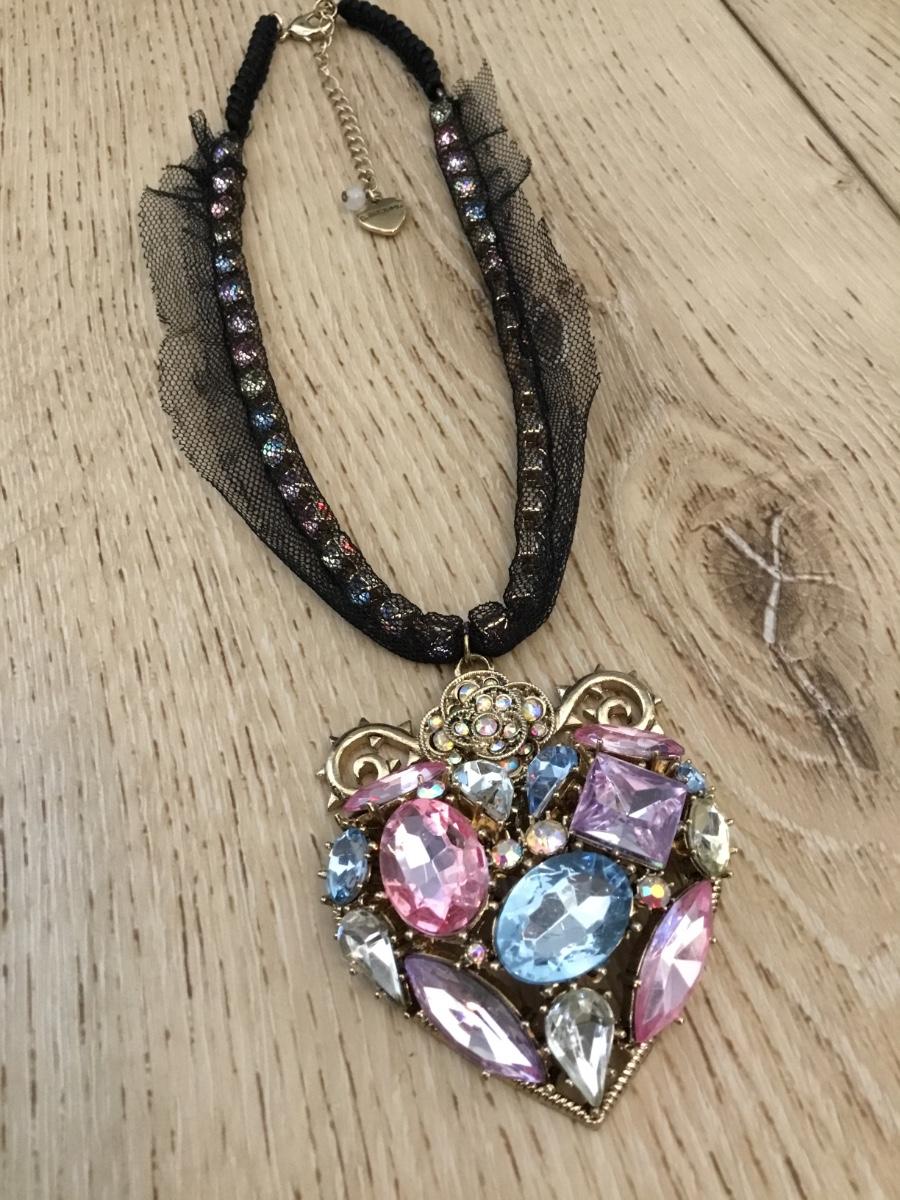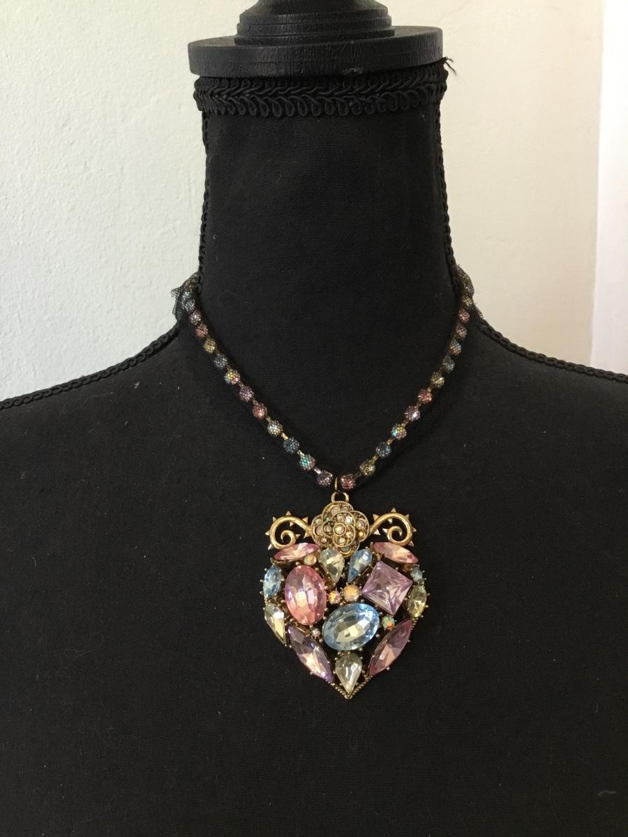 Rare, Betsey Johnson, multicolored heart, rhinestone statement, necklace