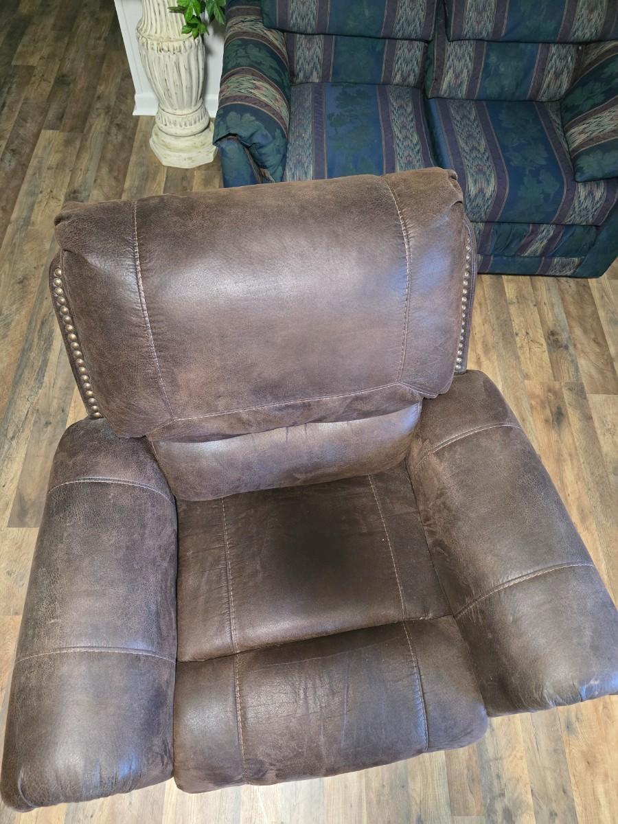 38x22x22 Believe it is microsuede leather look. Nice condition.