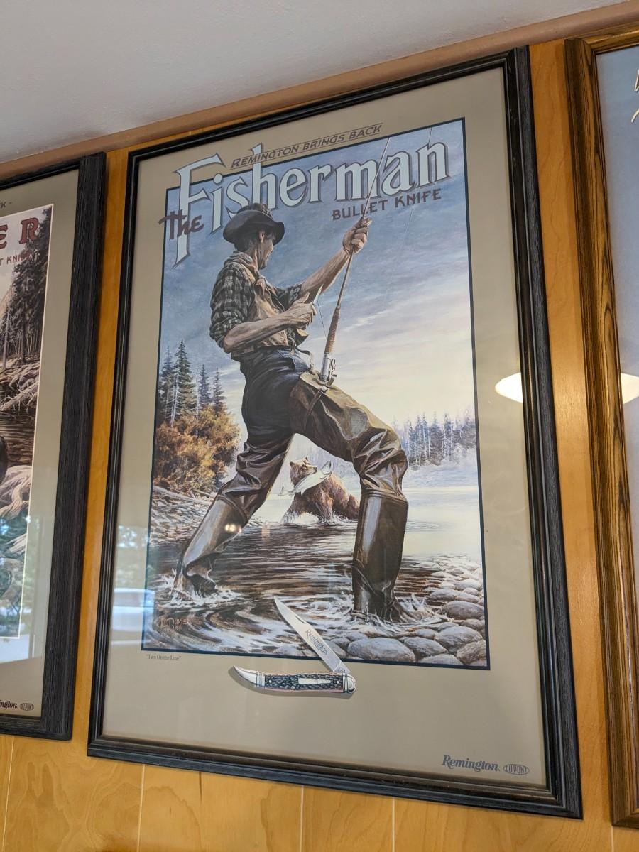 Remington Bullet Knife Poster "The Fisherman" WITH Matching Knife