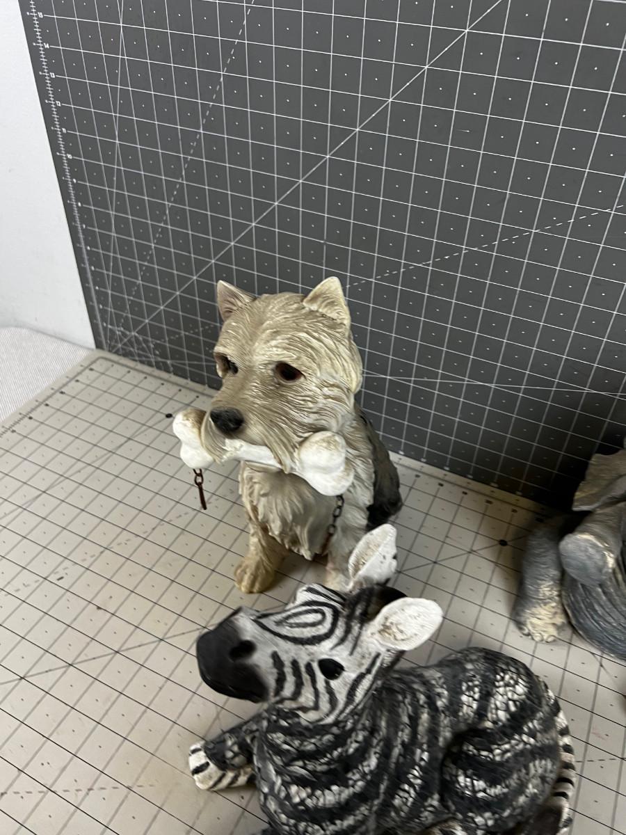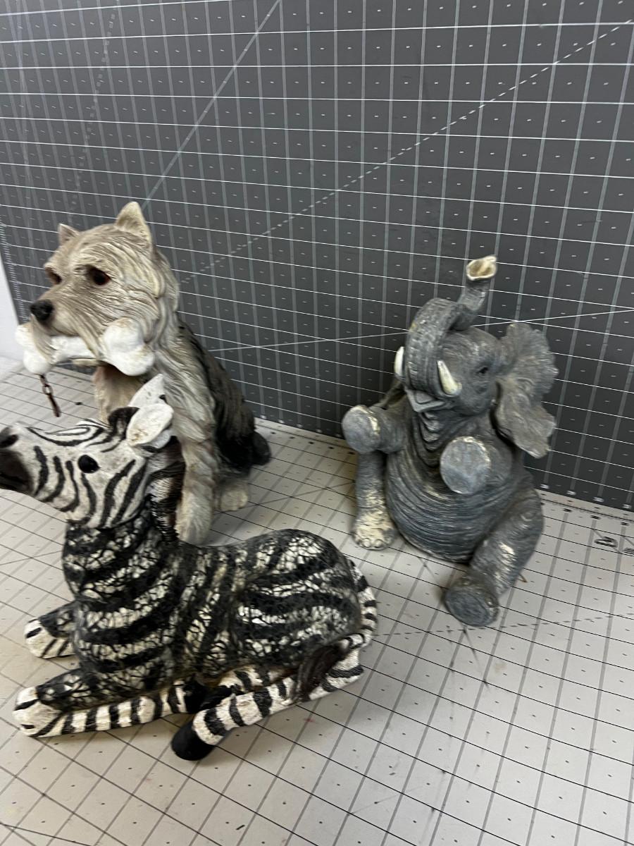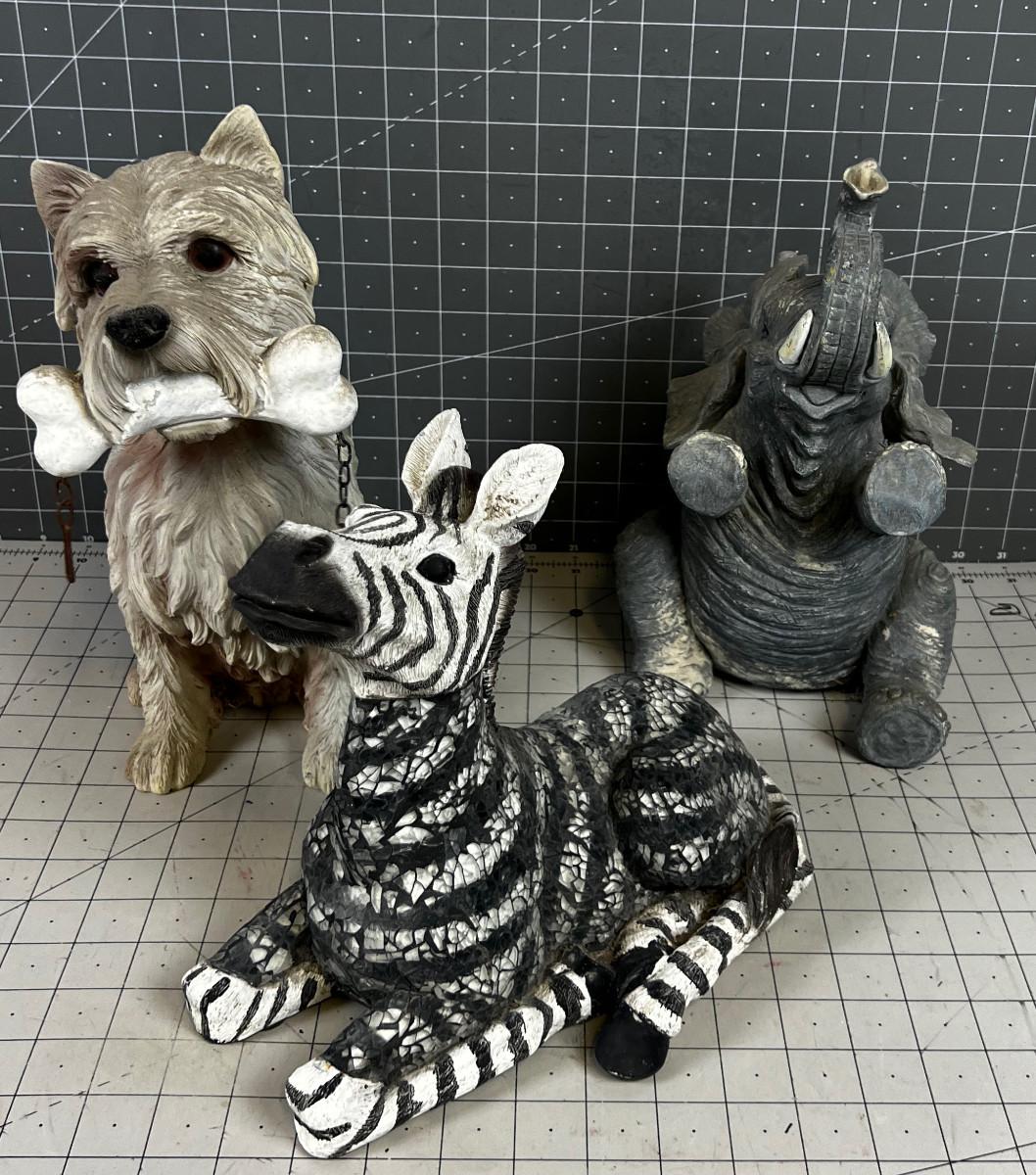 Resin Yard Art Statues (3) Zebra, Puppy and Elephant