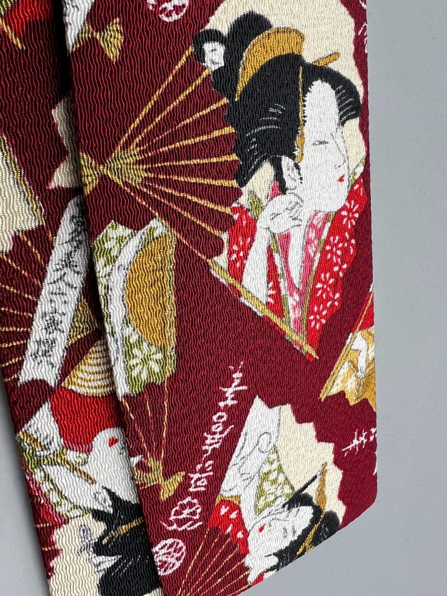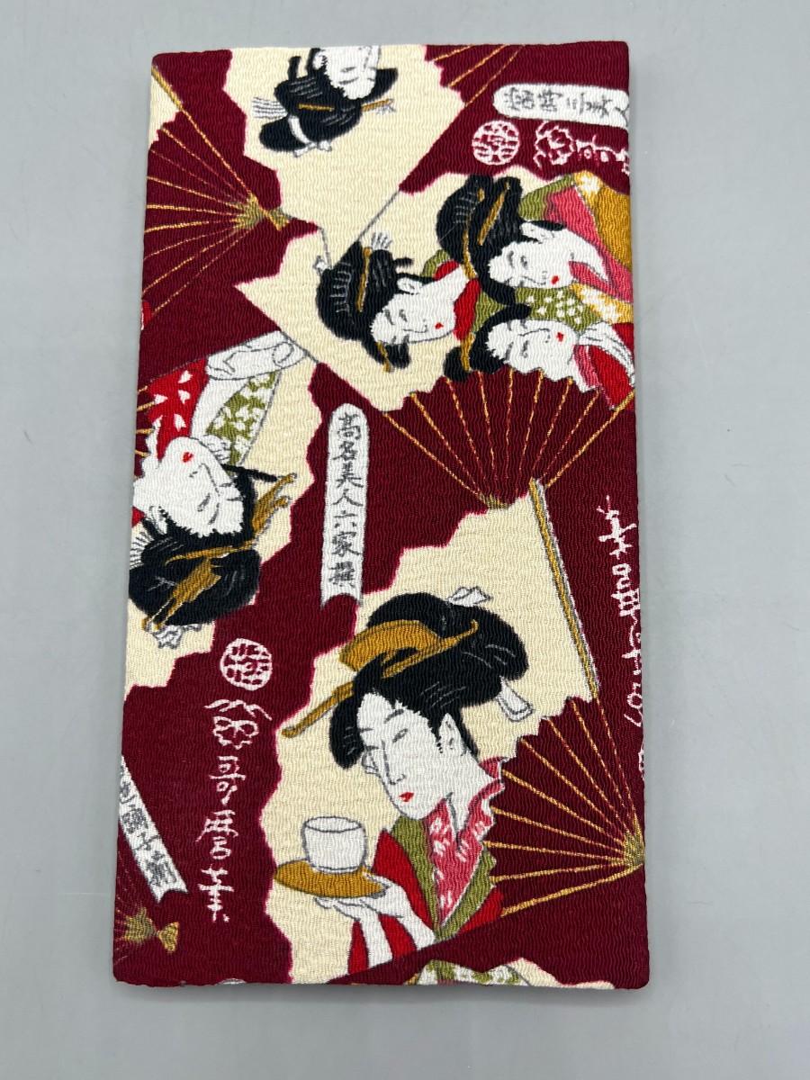 Retro Geisha Red Kimono Asian Fabric Print Cloth Wallet Blue Slots Inside