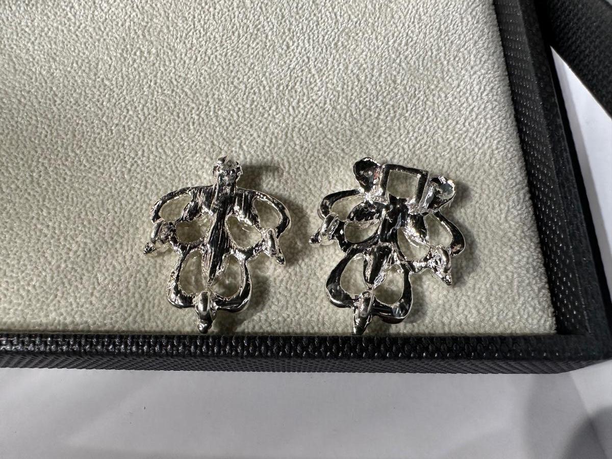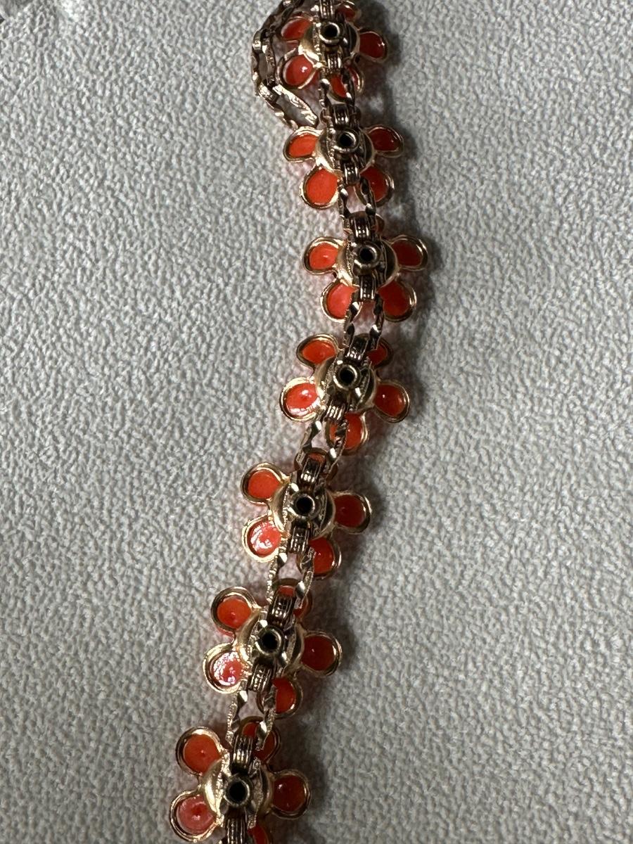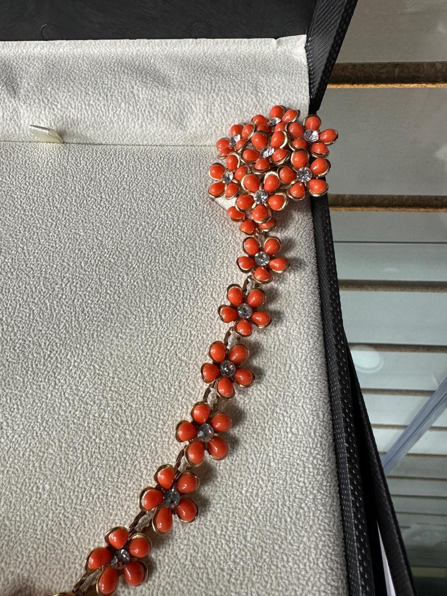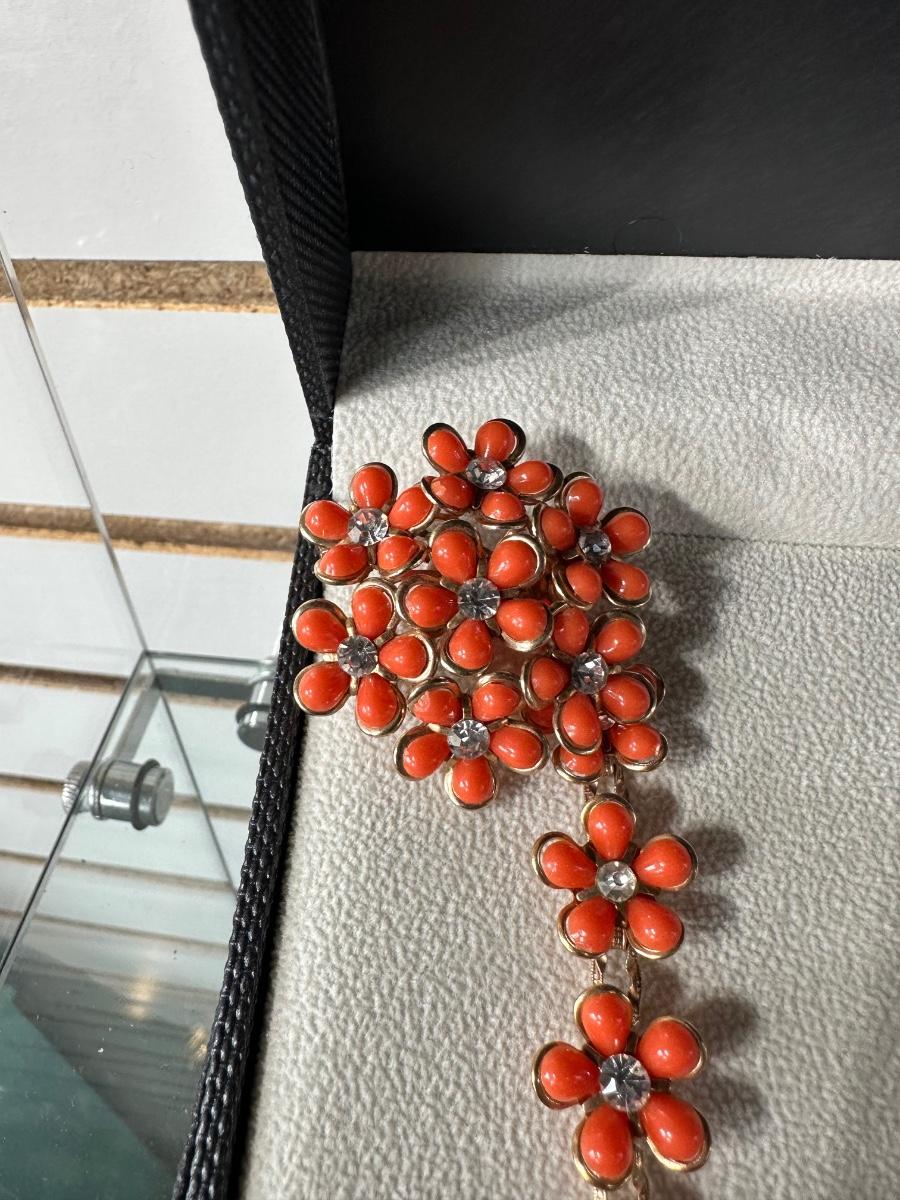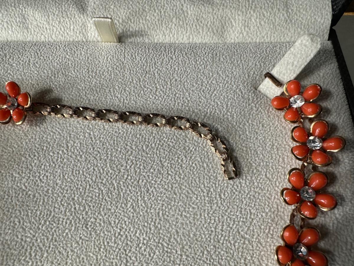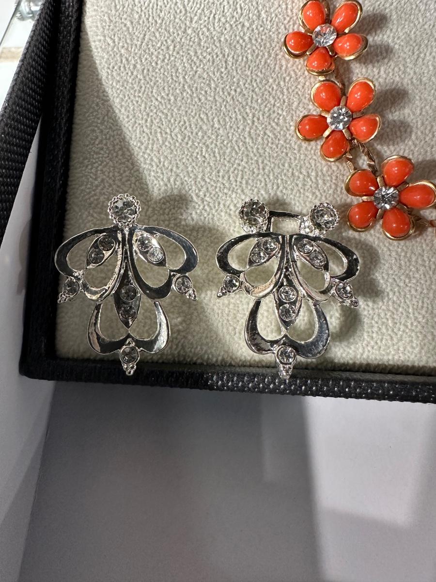 RETRO ORANGE FLORAL EARRING AND NECKLACE SET AND RETRO ELEGANT RHINESTONE SWEATER CLIPS