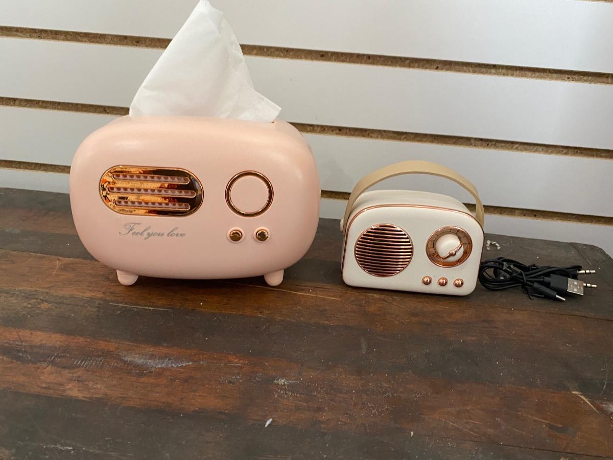 RETRO RADIO TISSUE HOLDER AND MINI BLUETOOTH RADIO MP3 PLAYER