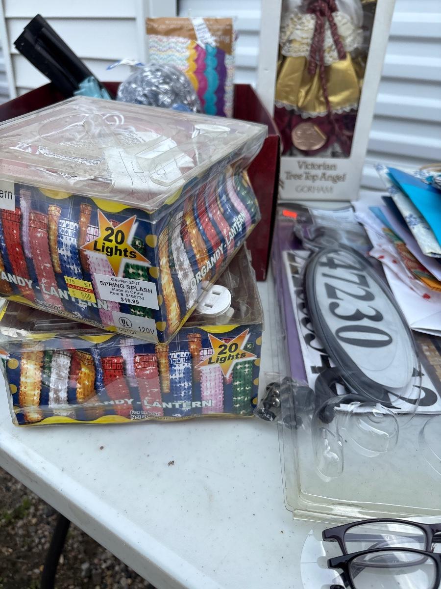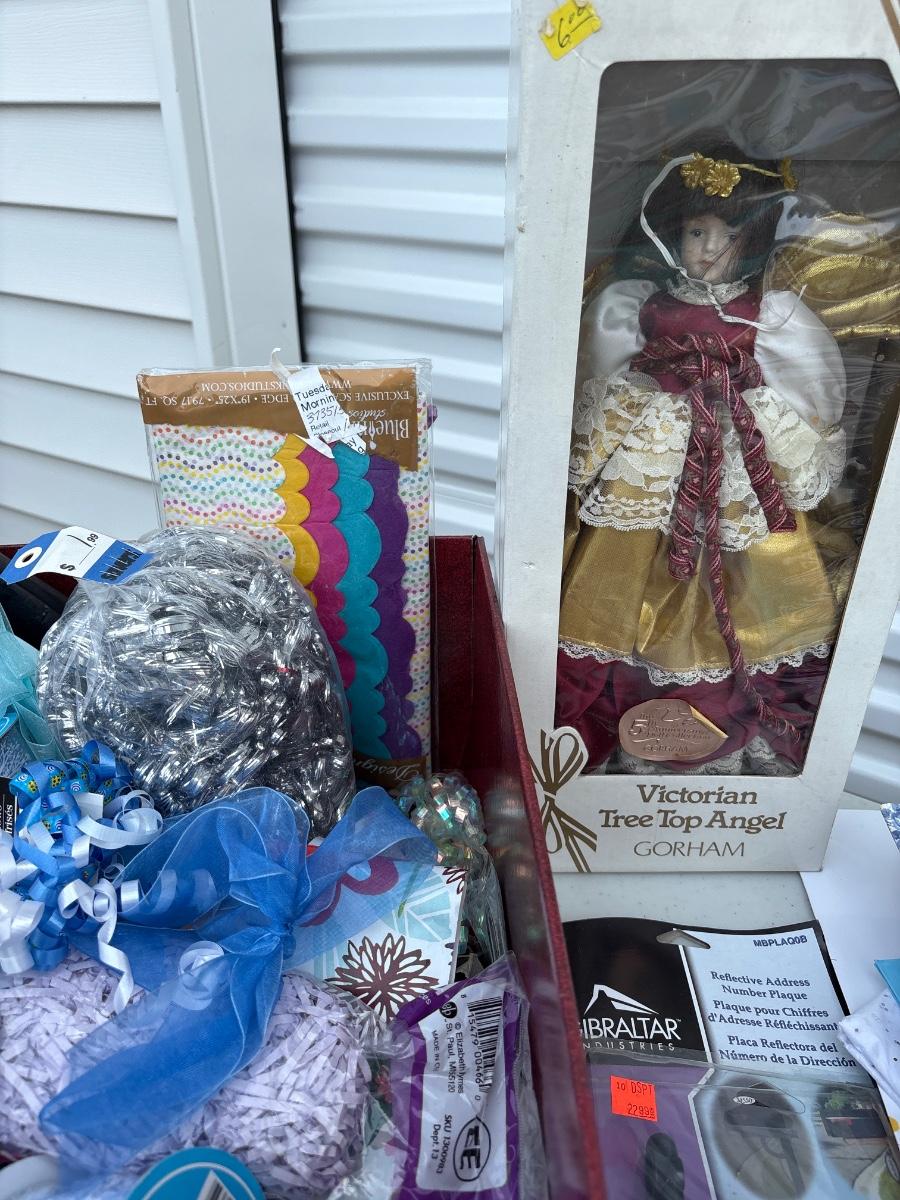 Ribbon and wrapping, lantern, lights, address plaque, and