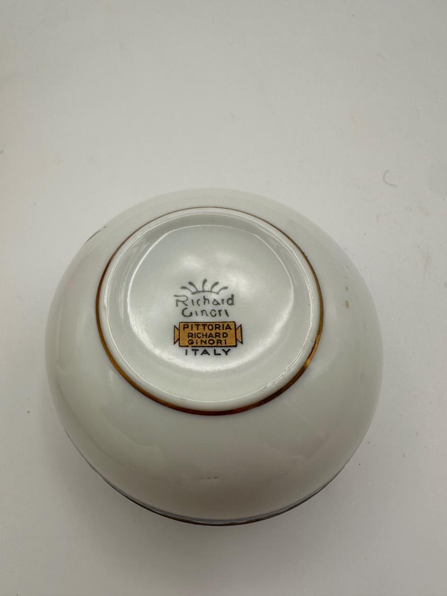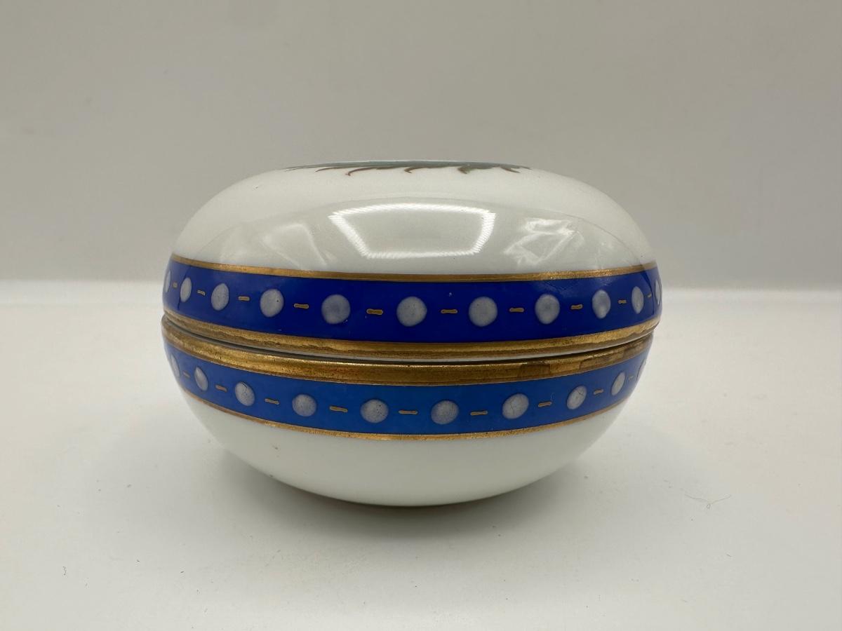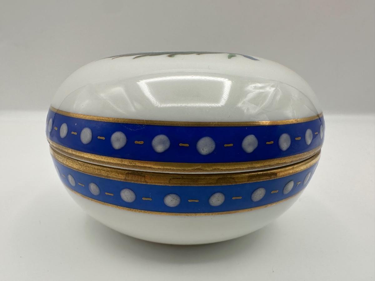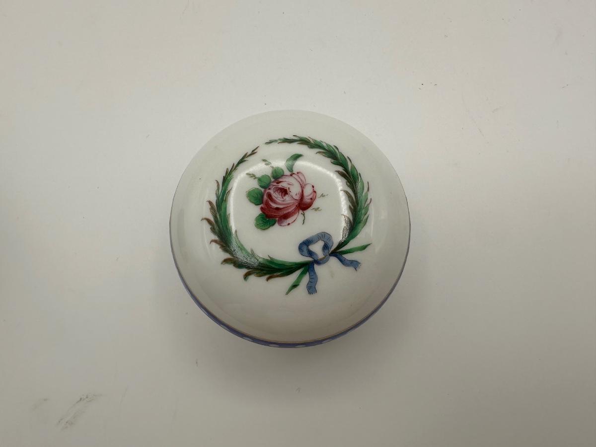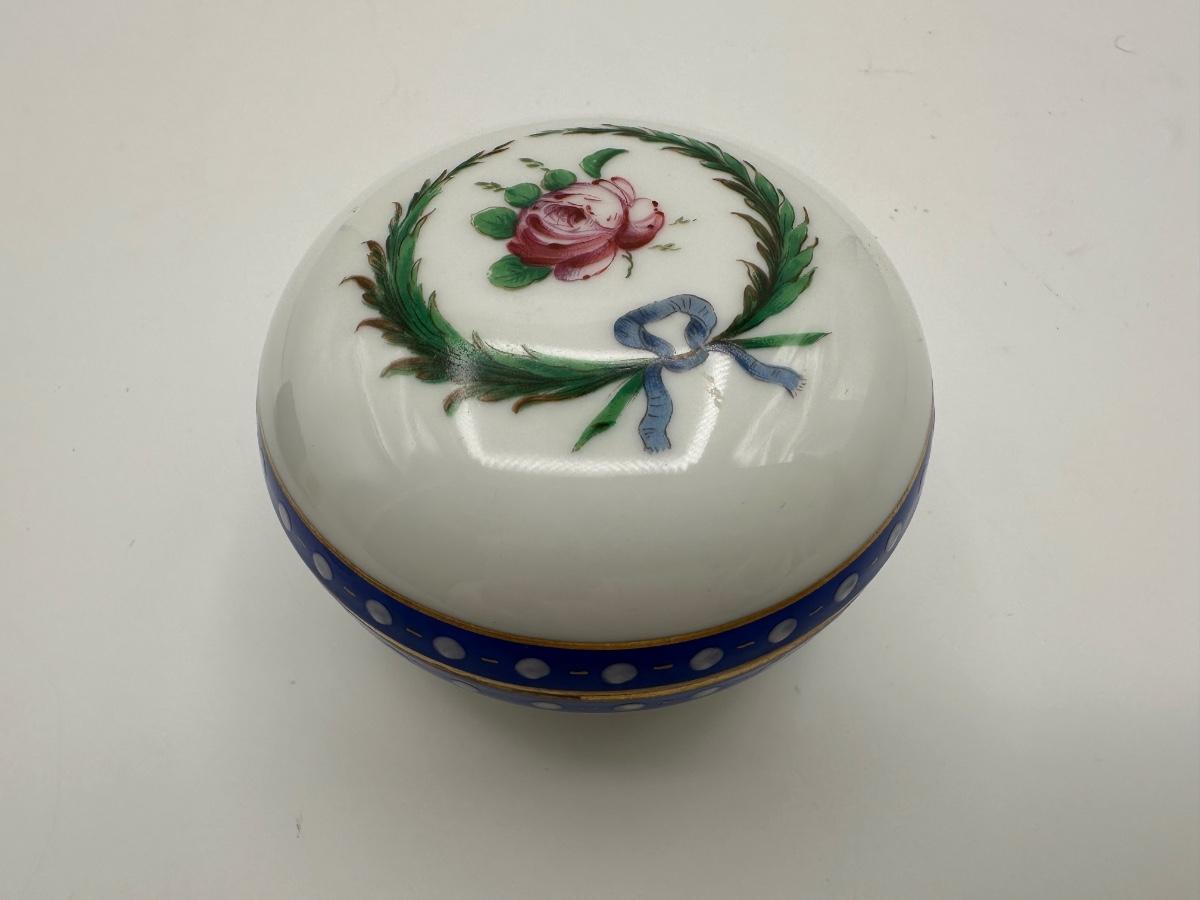 Richard Ginori Italy Hand-Painted Porcelain Box with Rose & Blue Ribbon